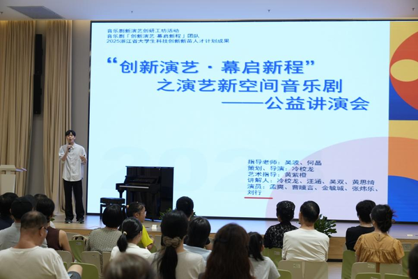 近日,浙江音乐学院戏剧系音乐剧“创新演艺·幕启新程”暑期社会实践团队,携两场精彩的演艺新空间音乐剧公益讲演会,分别走进浙江图书馆、中国美术学院,为公益活动献出一份力。