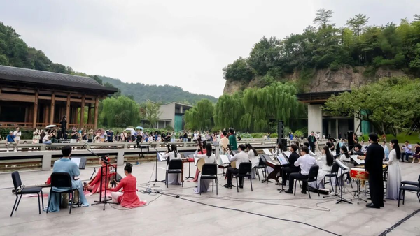 10月1日,杭州国家版本馆内乐声悠扬,《宋韵流声・秋之章》专场音乐会在此奏响。乐团全体演奏员以挺拔的姿态,精彩演绎千年宋词古曲,用极致的职业素养打动全场,让宋韵之美绽放别样光彩,在秋日意境中铺展千年宋韵的当代画卷,为观众带来跨越时空的文化共鸣。