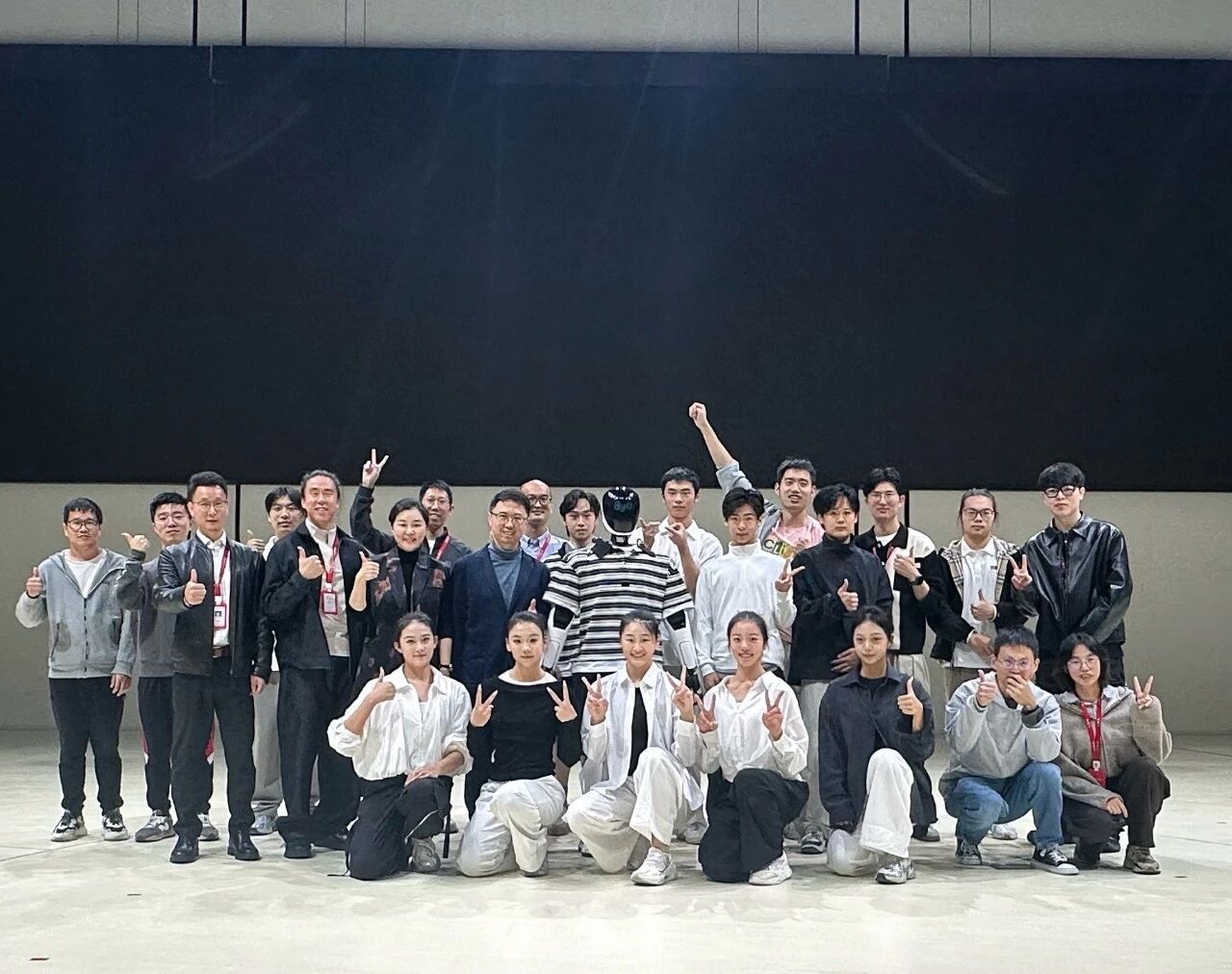 当智械的臂膀划破黑暗,与舞者的身躯精准呼应,一场史无前例的表演就此诞生。10月31日在大丰科创中心,由学院与浙江大丰实业股份有限公司、浙江硅基方舟机器人有限公司共同打造的“人机共舞首秀”惊艳亮相。这场表演以全尺寸大型机器人群体舞蹈的高难度演绎,刷新了行业对文娱机器人应用场景的认知,也为现场观众呈现了一台完整而动人的“人机共舞”舞台作品。