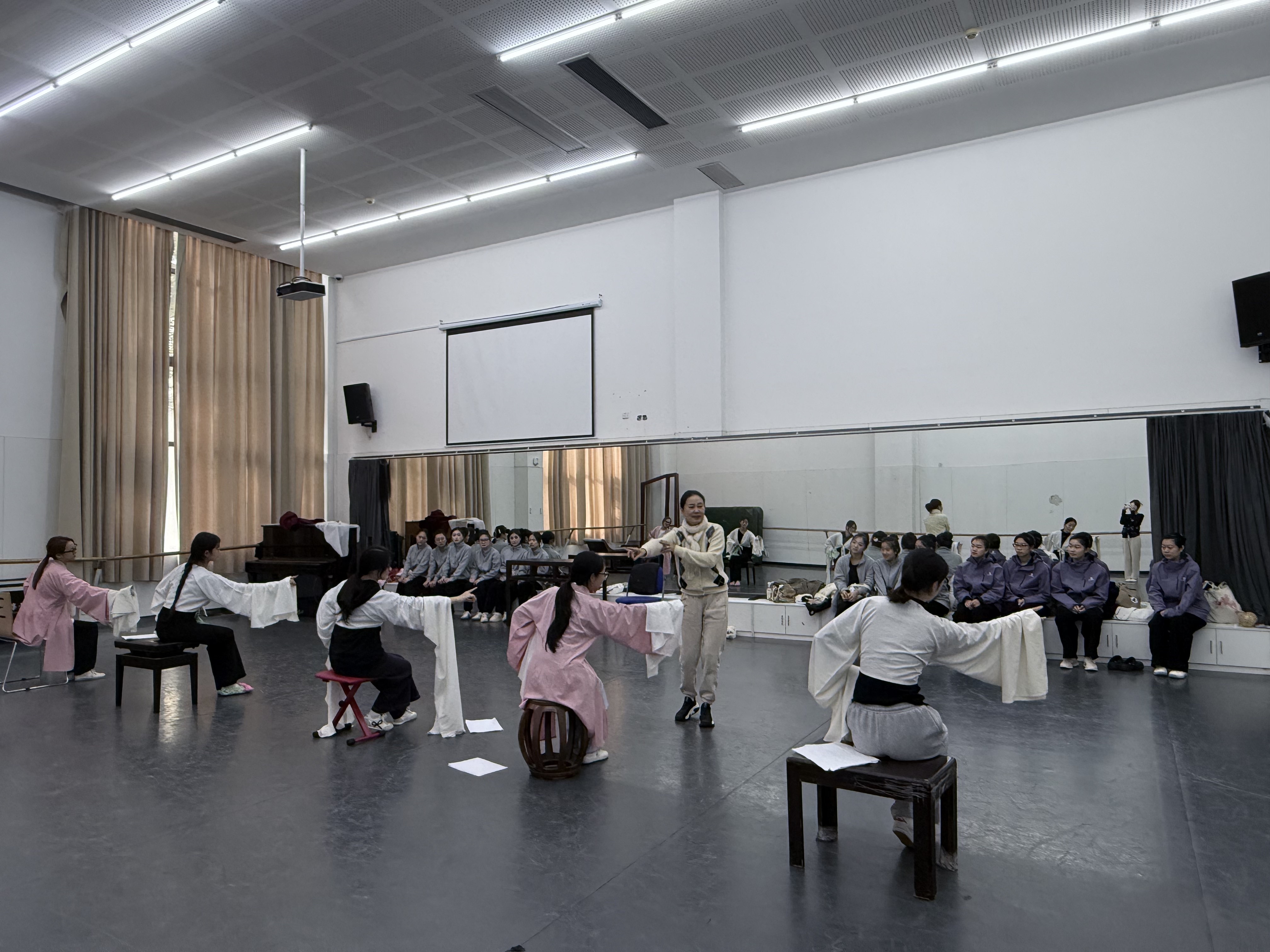 除专业课程学习外,师生团队还共同观摩了第四届中国—中东欧国家音乐舞蹈季中的卡特维兹编舞研究社原创舞剧及浙江音乐学院原创音乐剧《有凤来仪》。两场高水准的艺术演出不仅为师生带来了视听盛宴,更激发了学生对越剧艺术创新表达的深度思考。活动全程,同学们以饱满的热情投入学习,在互动问答、分组研讨等环节积极发声,充分展现了青年戏曲学习者的专业素养与艺术热忱。