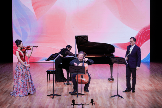 音乐会演出了5部作品,均为作曲与指挥系副教授、副主任、硕士生导师张泽艺近年创作的室内乐新作品。作品在体裁和形式上具有多元性,其中核心作品为2025年国家艺术基金小型舞台资助项目《四季之秋舞》。作品由单簧管教师翟星星、小提琴教师钟易非、室内乐学院教师张源与艺术指导齐笑怡共同献上,将“秋天的舞蹈”这一既有秋日大地多彩样貌,也流淌着丰收喜悦的意象演绎得生动鲜活,获得了专家和观众的一致好评。