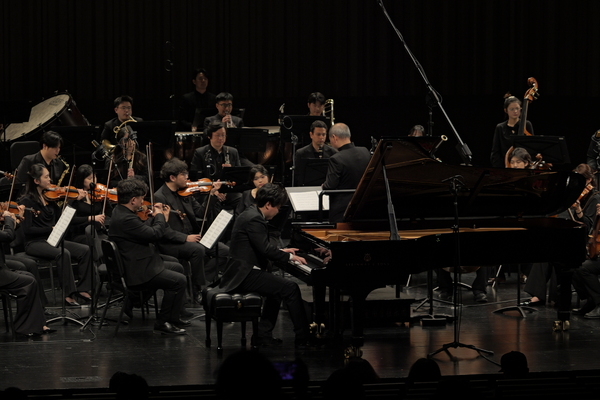 音乐会的下半场,沈久茗与乐团共同演绎乔治·格什温《蓝色狂想曲》,为现场带来别样的爵士风情,将演出氛围推向高潮。作为融合古典音乐与爵士乐的经典之作,该曲对演奏者的功底与艺术理解有着极高要求。钢琴家的演奏灵动洒脱,琴键间的爵士韵律自由奔放,即兴的表达与精准的技巧完美结合,将作品中的活力与浪漫展现得酣畅淋漓。乐团铜管声部爵士韵味醇厚,弦乐细腻烘托、打击乐精准点睛,与钢琴音色交织相融,让古典与爵士的融合在舞台上碰撞出别样魅力。当最后一个音符落下,现场掌声与喝彩声此起彼伏。沈久茗也多次登台致谢,并献演《奉献》作为返场曲目。