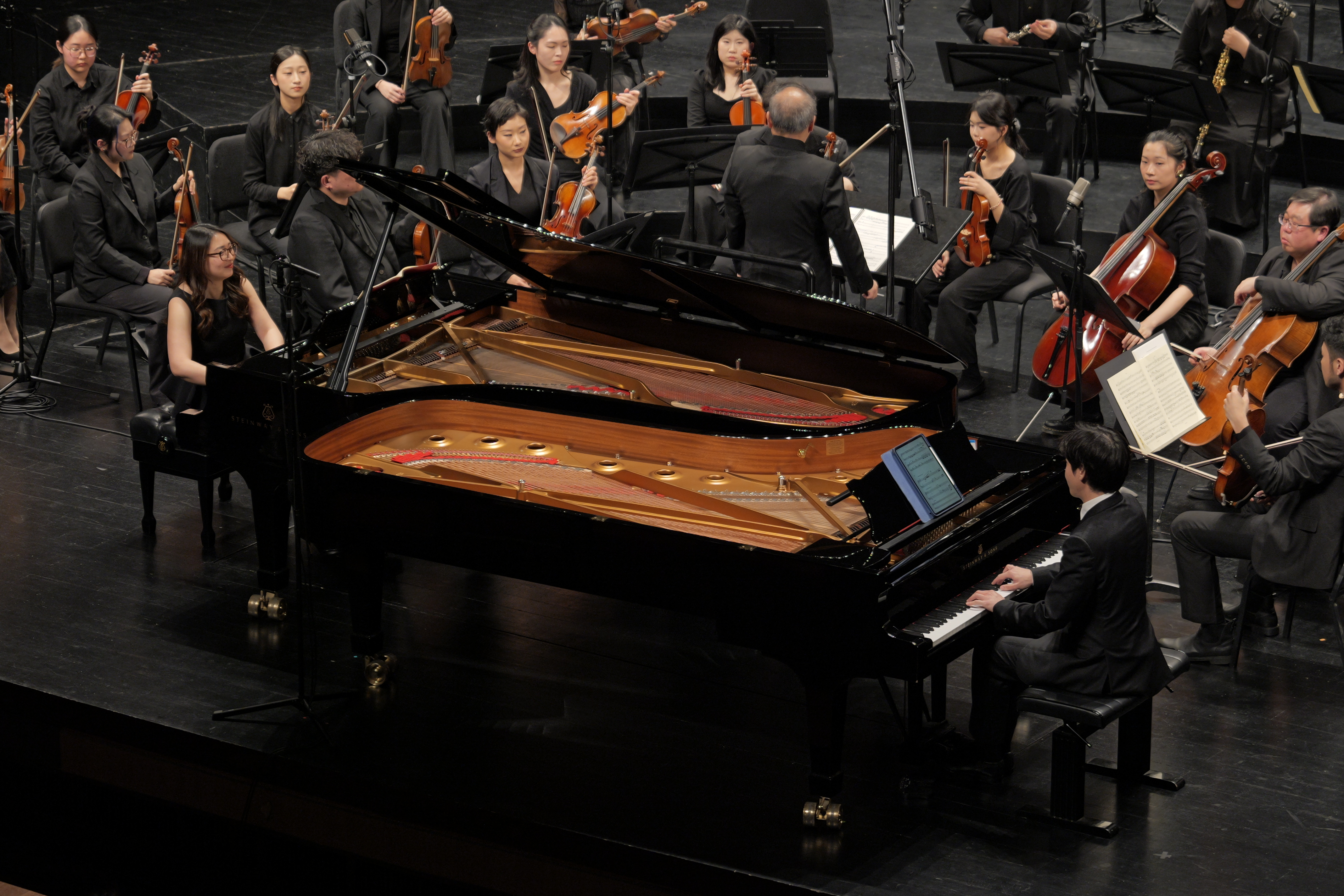 3月19日晚,浙音室内管弦乐团25/26乐季《键盘上的对话》音乐会在音乐厅圆满落幕。作为与柯蒂斯音乐学院合作主题音乐季的重磅场次,这场演出邀请到柯蒂斯音乐学院校友、钢琴家贾然和沈久茗,携手第十五届金钟奖得主孙榆桐三位顶尖钢琴家同台,在浙江音乐学院副教授、指挥教研室主任周杰的执棒下,与乐团联袂勾勒出琴键与管弦交织的绝美音乐图景。