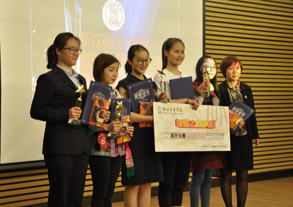 演讲时,10名候选人根据家庭、学习、专业技能、志愿服务、创新创业等情况进行了介绍。他们自强自立、奋发向上的感人经历,引起了现场评委老师与同学们的深切感触。最后,李海莉、杨昱云、金灵、陈凯歌、林琳这5名学生被入选为浙江音乐学院首届“自强之星”。李海莉不畏惧贫困,始终坚持“唱、跳、弹、画”全面发展,如今已考入杭州某学校成为一名音乐教师,她相信“唯有自强,方有出路”;杨昱云将专业知识与民族文化结合,将音乐教育带回养育她的大山,支教家乡孩子的侗族姑娘她立志要做民族文化的传承者;金灵出生在无声家庭却内心阳光开朗,身兼院心理协会会长等多个职务,在平凡的生活中有着不平凡的坚持;陈凯歌是一位靠着自己的努力,三个月赚取一万元学费,跨进浙音大门的舞蹈系大一学生,她不向命运的玩笑妥协,笑言女儿当自强;林琳将古琴与琵琶练成看家本领,又将青春热情播散到学院各类志愿服务中,“寒门立志勤无价,枯灯黄卷业有成”是她的人生信念。另外5名同学则获得“自强之星”提名奖,他们分别是人穷志坚一路高歌的欧丽媛、创业自强的曾蒋林、展现铿锵玫瑰风采的王志君、坚定“梦想不是炫耀,而是认真实践”的曾湘丽和西洋151班领路人的李敦晓。贾秀英为首届“自强之星”获奖者颁奖,图书馆馆长孟凡玉为自强之星提名奖获得者颁奖。