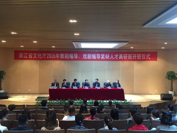 5月10日上午,“浙江省文化厅2016年舞蹈编导、戏剧编导紧缺人才高研班”在我院正式开班。此次高研班由省文化厅委托我院举办。我院党委副书记、副院长张建国,省文化厅人事处处长戴言,省文化馆馆长裘国樑、副馆长王布伟及我院戏剧系、舞蹈系相关负责人出席开班仪式,戏剧系、舞蹈系、继续教育学院(筹)教师、高研班全体学员等参加了本次开班仪式。