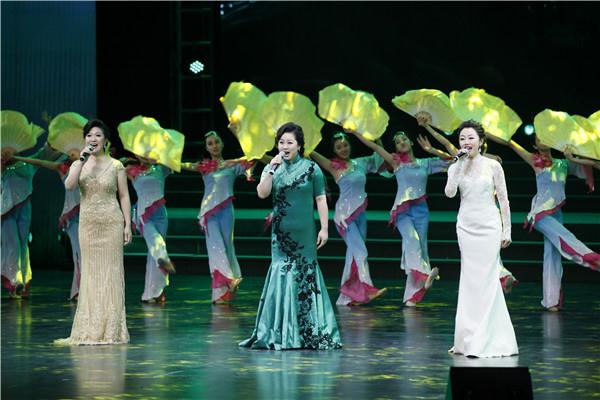 耳畔响起了熟悉的歌曲,陈利敏、许红霞、段玉香女声重唱《在希望的田野上》,舞台绚烂似春天的娇艳,绿油油的色调突显着春季的气息。听着歌曲,观众们感受到热情、阳光和希望,仿佛生命的力量正在无限散发。