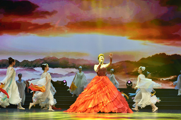 “走过了春和秋,走在阳光路上,花儿用笑脸告诉我,天空好晴朗”,金瑶用嘹亮的歌声、歌唱出动情的《阳光路上》。在一群年轻人伴舞下,舞蹈演员们似一群舒展羽绒的白鸽,向着“红日”翱翔天际。