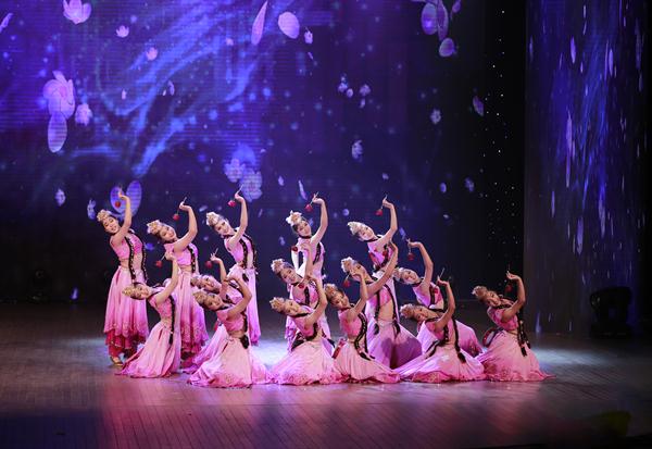 演出中,由我院选送的古筝重奏《倾杯情》和舞蹈《送我一朵玫瑰花》,赢得了广大留学生们的高度赞许。波动琴弦,弹出缠绵动人的乐曲,观众们静静地欣赏着古筝艺术的魅力。一群青春靓丽的姑娘出现在舞台中,她们手持玫瑰,跳出了新疆舞蹈独特的风情,激情四射的舞姿,把文艺演出推向高潮。演出在一曲温馨的小合唱《我们一家人》中落下帷幕。