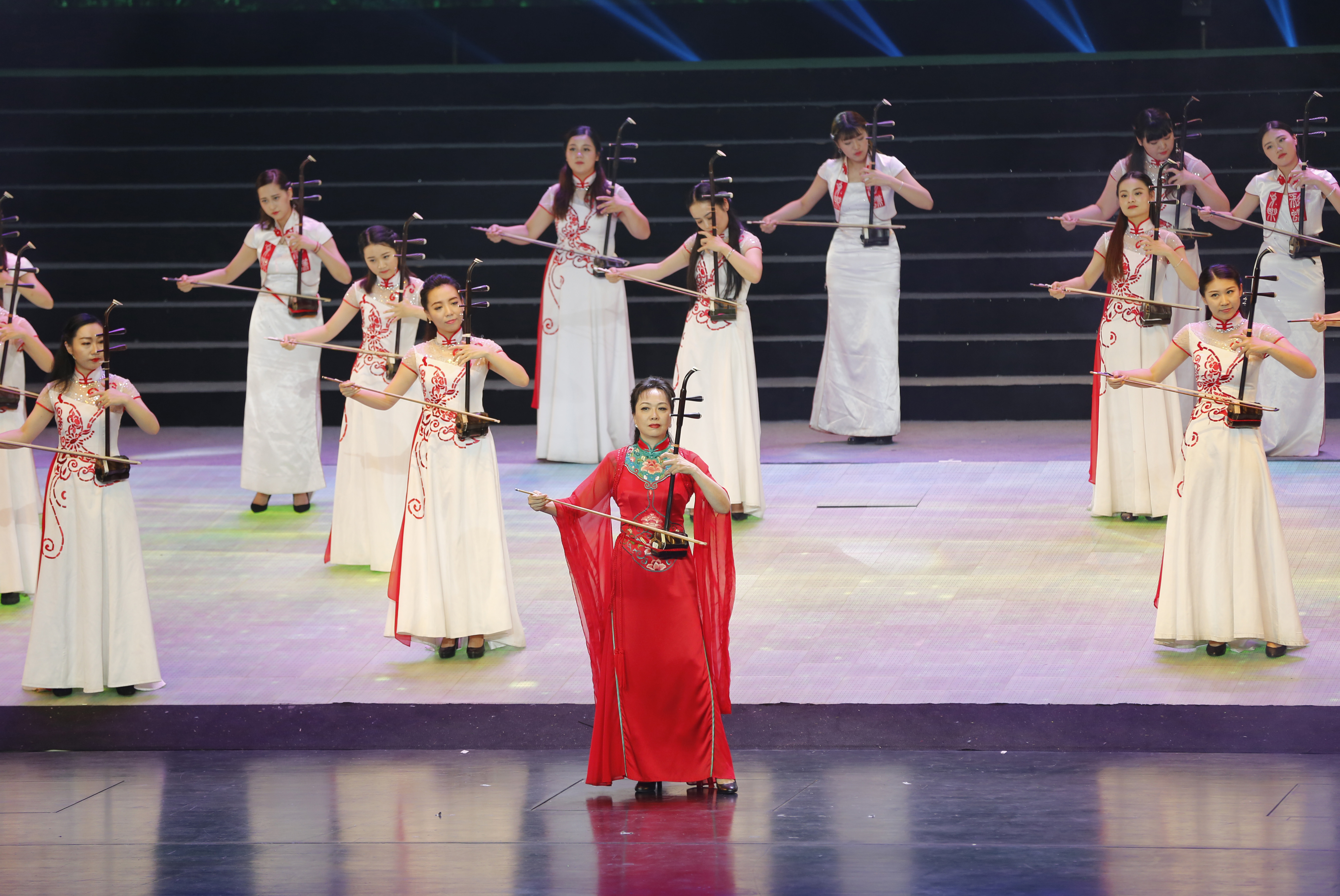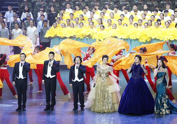 雪花飘在红军身,不畏艰难困苦行。一首由声歌系教师王维平领唱的《过雪山草地》,唱出了红军战士翻雪山过草地,勇往直前的大无畏精神。《我的祖国》到处都有明媚的风光, 到处都有青春的力量,到处都有灿烂的阳光,在声歌系教师金瑶深情悠扬地演唱下,人们重回了激情燃烧的岁月。由国乐系教师许奕领奏,张咏音、汪淼等协奏的二胡曲《赛马》如万马奔腾,滚滚而来,展现之江大地勃勃生机。民乐、舞蹈、杂技的全新搭配,唤起了中华儿女的崛起奋进,国乐系教师刘乐和李跞倾情弹奏出动人之音。身着军装的声歌系教师马亚囡英姿飒爽地走上舞台,一曲《中国朝前走》,听得观众心潮澎湃,激动人心。你们是时代的先锋,你们是祖国的希望,“八秒”合唱团的同学们手举着朵朵鲜花,唱出了英雄的气魄,唱出了追逐的梦想。把一切献给党、永远跟党走,我们的事业越走越辉煌;把一切献给党、永远跟党走,我们的日子越走越阳光;把一切献给党、永远跟党走,我们的精神越走越昂扬,配着美轮美奂的舞蹈,在声歌系教师胡雁、刘伟、叶雯等人的精彩演唱下,歌曲《把一切献给党》响彻全场。
