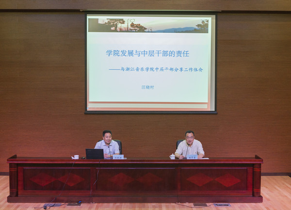 褚子育在总结中指出,汪晓村结合个人多年领导岗位和干部管理工作经验,对学院中层干部如何充分发挥中坚作用、全面履行岗位职责提出了具体明确的要求。希望大家认真学习,深入实践,开拓创新,锐意进取,时刻把学校的事业放在心上,踏踏实实干好本职工作,为建设一流高水平音乐学院努力奋斗。