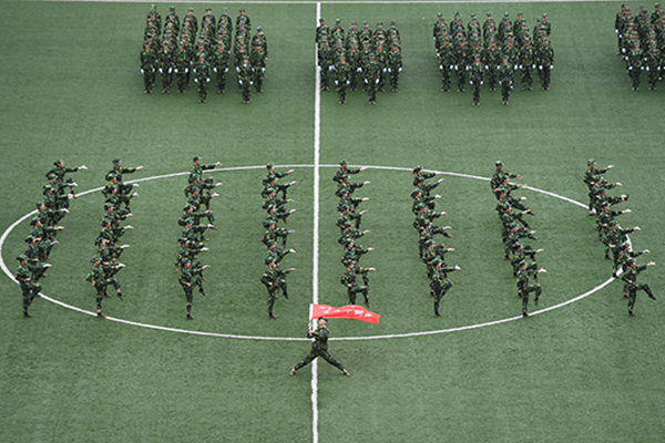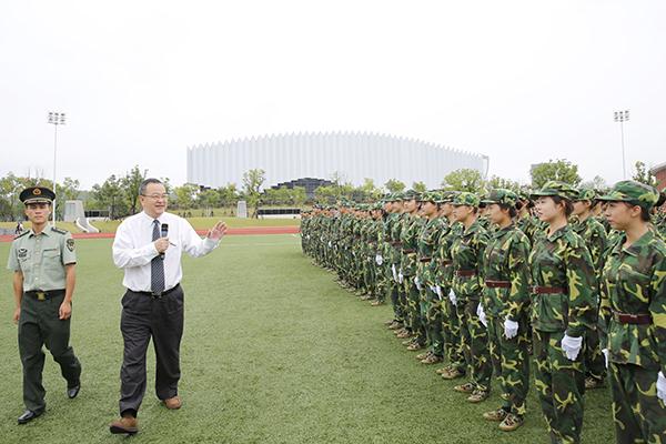 9月30日上午,在隆隆的炮声中,我院2016级学生军训总结会暨分列式表演在田径场隆重举行。学院领导褚子育、贾秀英、张鸿雁、方培新、杨九华,军训团团长周宇出席大会,相关职能部门和各系主要负责人、承训官兵、辅导员、班主任和2016级学生参加大会。