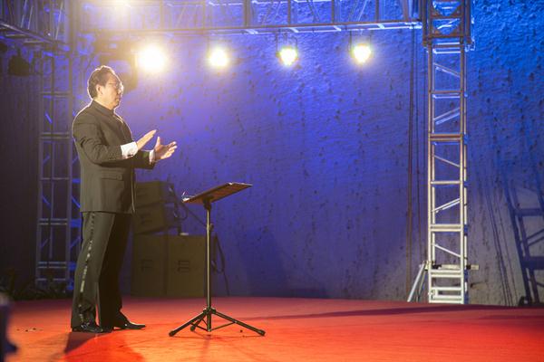 本场音乐会在回声过长的洞穴中进行。艺术总监阎宝林因地制宜,重新安排曲目顺序与队形,并抽调部分团员登上岩洞较高处进行回应式的演唱,以创造出适宜该地形的特有音效。身着八秒代表性的红黑、黑白礼服的团员们,以声为主,并配以丰富的队形和巧妙的肢体动作,音符跳动,使这台岩洞音乐会在特有的灯光布置下产生了富有“八秒”特色的效应。