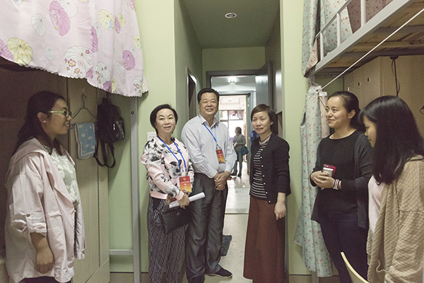 10月10日下午,西湖区人大代表一行来我院检查文明寝室建设工作。学院党委副书记贾秀英、相关部门负责人陪同检查。