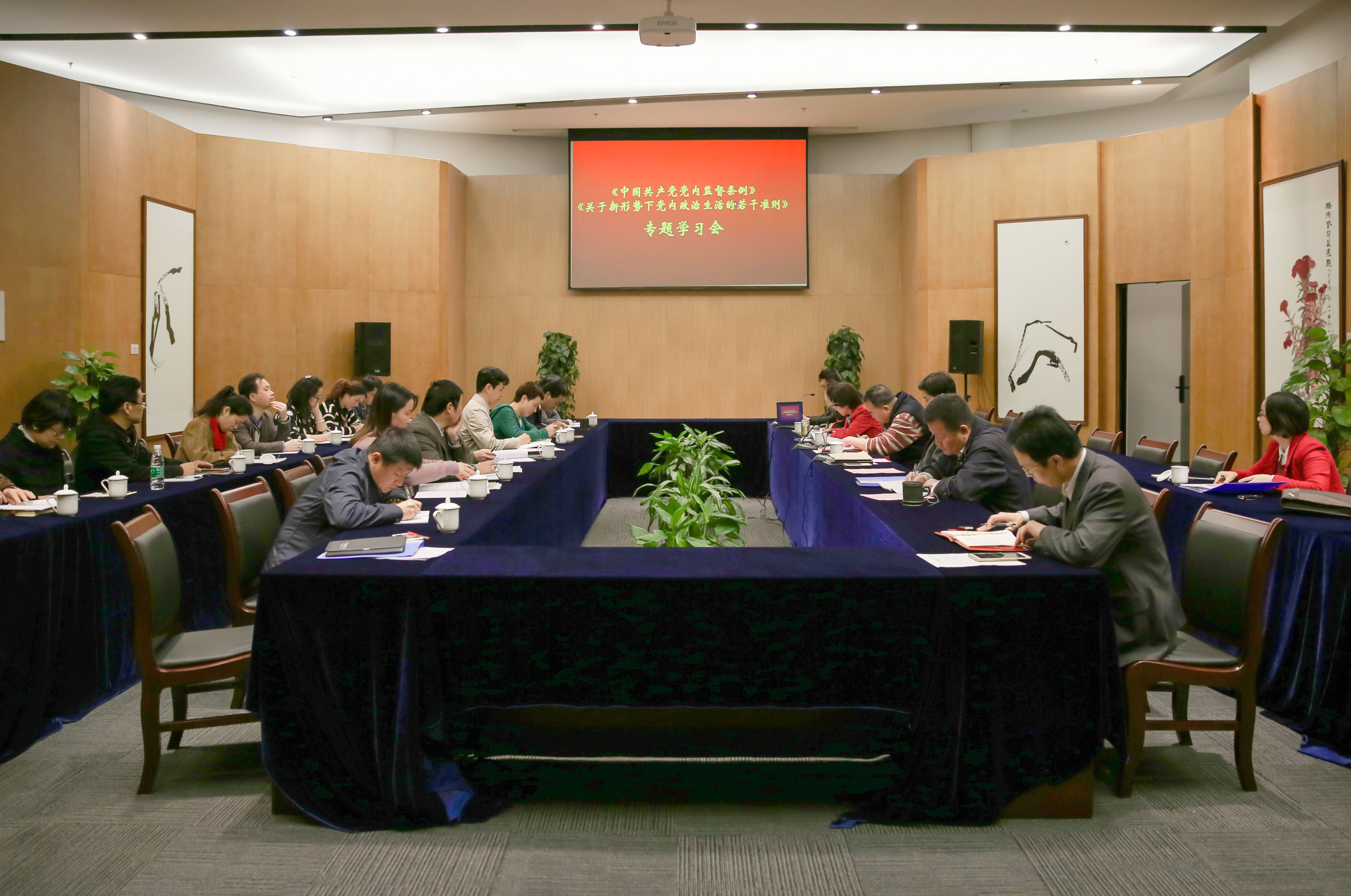 与会人员对十八届六中全会审议通过的《关于新形势下党内政治生活的若干准则》、《中国共产党党内监督条例》全文进行了原原本本、认认真真的学习。