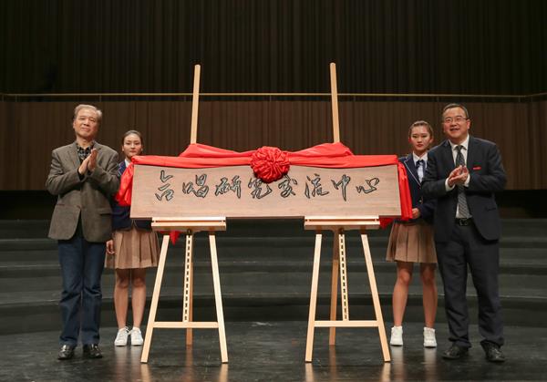 音乐会上,张建国宣读“合唱研究交流中心”成立文件,褚子育和中国合唱协会理事长李培智为“合唱研究交流中心”揭牌。