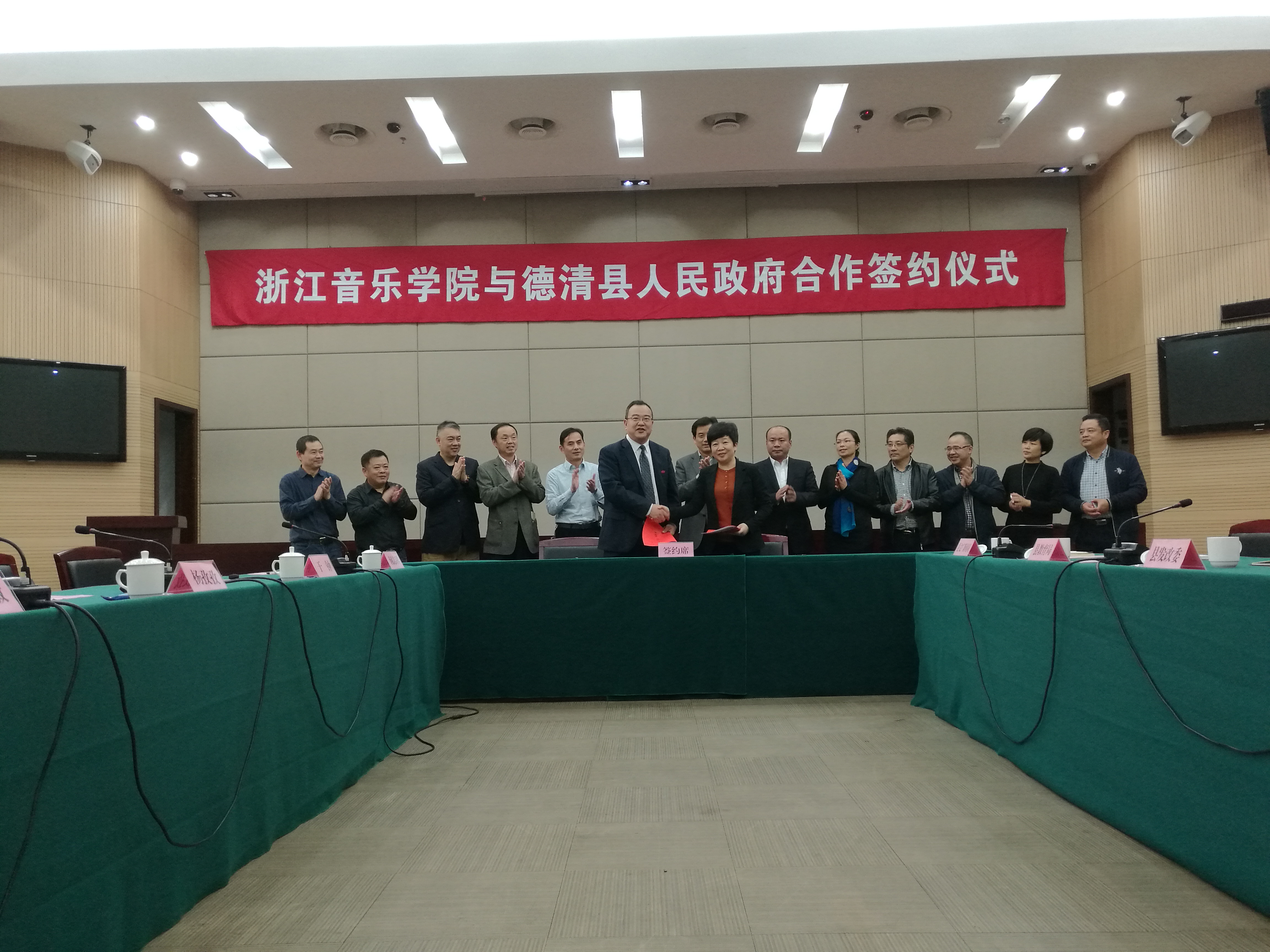 11月18日,我院与德清县人民政府签署合作协议,双方将在打造“洛舍钢琴音乐小镇”、合作办学、音乐普及等领域开展深入合作。签约仪式由德清县委常委、宣传部长张林华主持,发展规划与社会合作处、资产与后勤管理处、附属学校(筹)、创业学院(筹)、继续教育学院等部门负责人参加了本次签约仪式。会上,德清县委副书记、县长王琴英致辞,我院党委书记、副院长褚子育讲话。