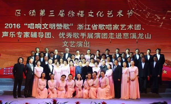 11月26日晚,由浙江省文化馆、浙江省文化志愿者总队主办,慈溪市文广新局等单位承协办的2016“唱响文明赞歌”浙江省歌唱家艺术团、声乐专家辅导团、优秀歌手展演团文艺演出活动在宁波慈溪市龙山镇三北影剧院内完美呈现。