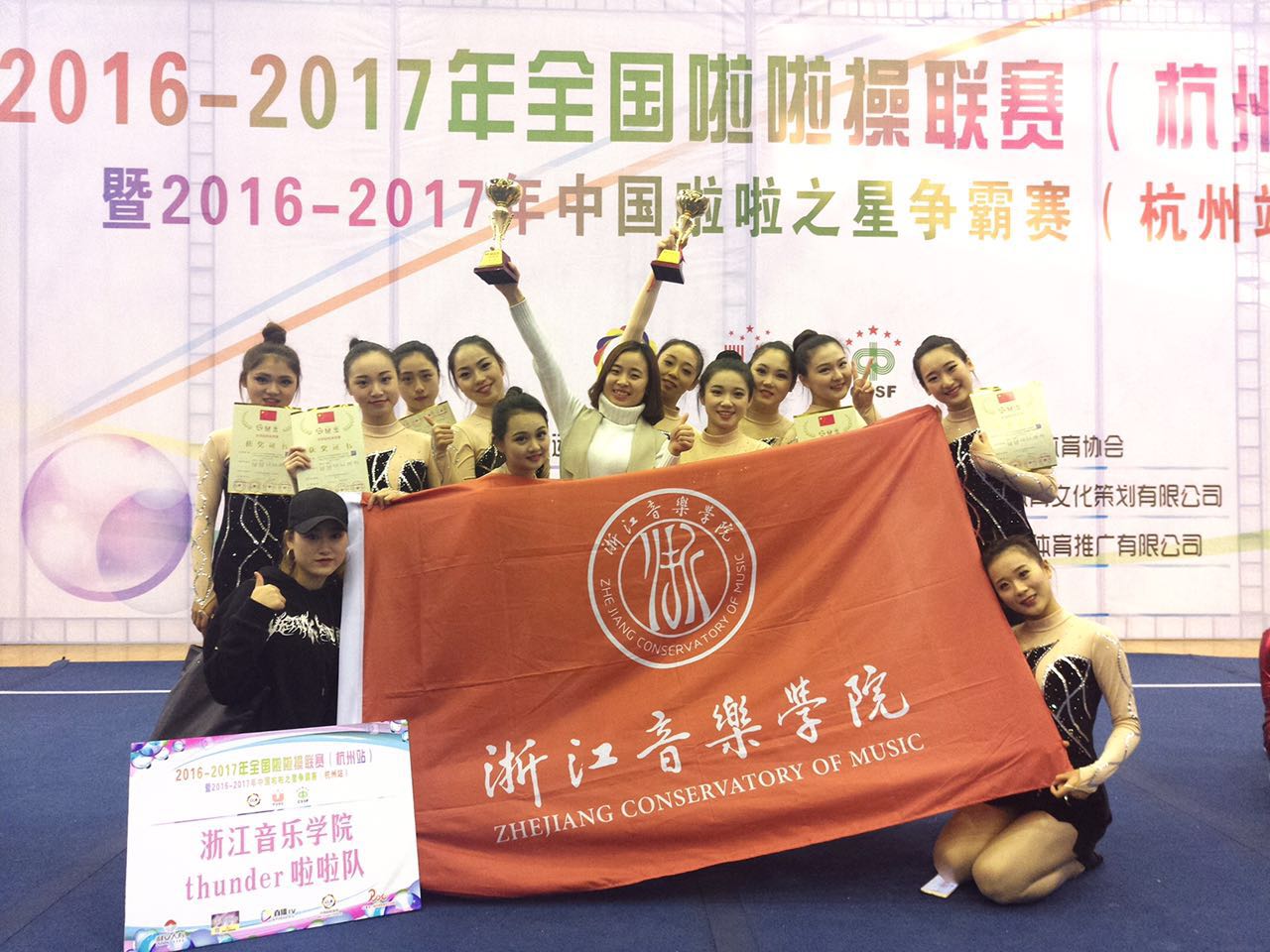 啦啦操集体操、舞蹈、音乐、健身、娱乐于一体,体现张扬热烈、朝气蓬勃的精神力量,以独有的阳光、时尚和团队精神,引爆全国校园体育,在社会上深受广大民众喜爱。在此次2016-2017年全国啦啦操联赛(杭州站)暨中国啦啦之星争霸赛(杭州站)比赛中,我院“Thunder”啦啦队表演饱含热情、力度到位、充满活力,从117支代表队中脱颖而出,获得两项冠军。