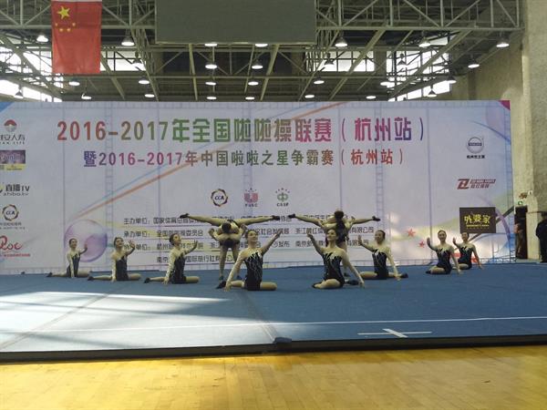 11月25至27日,2016-2017年全国啦啦操联赛(杭州站)暨中国啦啦之星争霸赛(杭州站)比赛在杭州职业技术学院举行。我院公共基础部教师杨娟花带领的“Thunder”啦啦队荣获双人街舞啦啦操、集体爵士啦啦操两项冠军,并获得组委会的邀请参加国际啦啦操比赛。