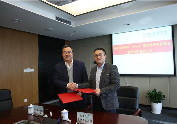 签约仪式上,杭州珠江三毛琴行有限公司捐资50万元,在我院钢琴系设立“Simon钢琴教育专项基金”。基金专项用于支持钢琴系教师开展学术交流、教学竞赛等活动,开拓国际视野,创新国际化教学理念,不断提升教学能力和水平;资助钢琴系教师建设科研创新平台,开展科学研究,出版专著、个人专辑等;帮助钢琴系优秀师生在国内外高级别音乐场所举行艺术实践活动,为师生提供更多有价值的艺术实践机会。