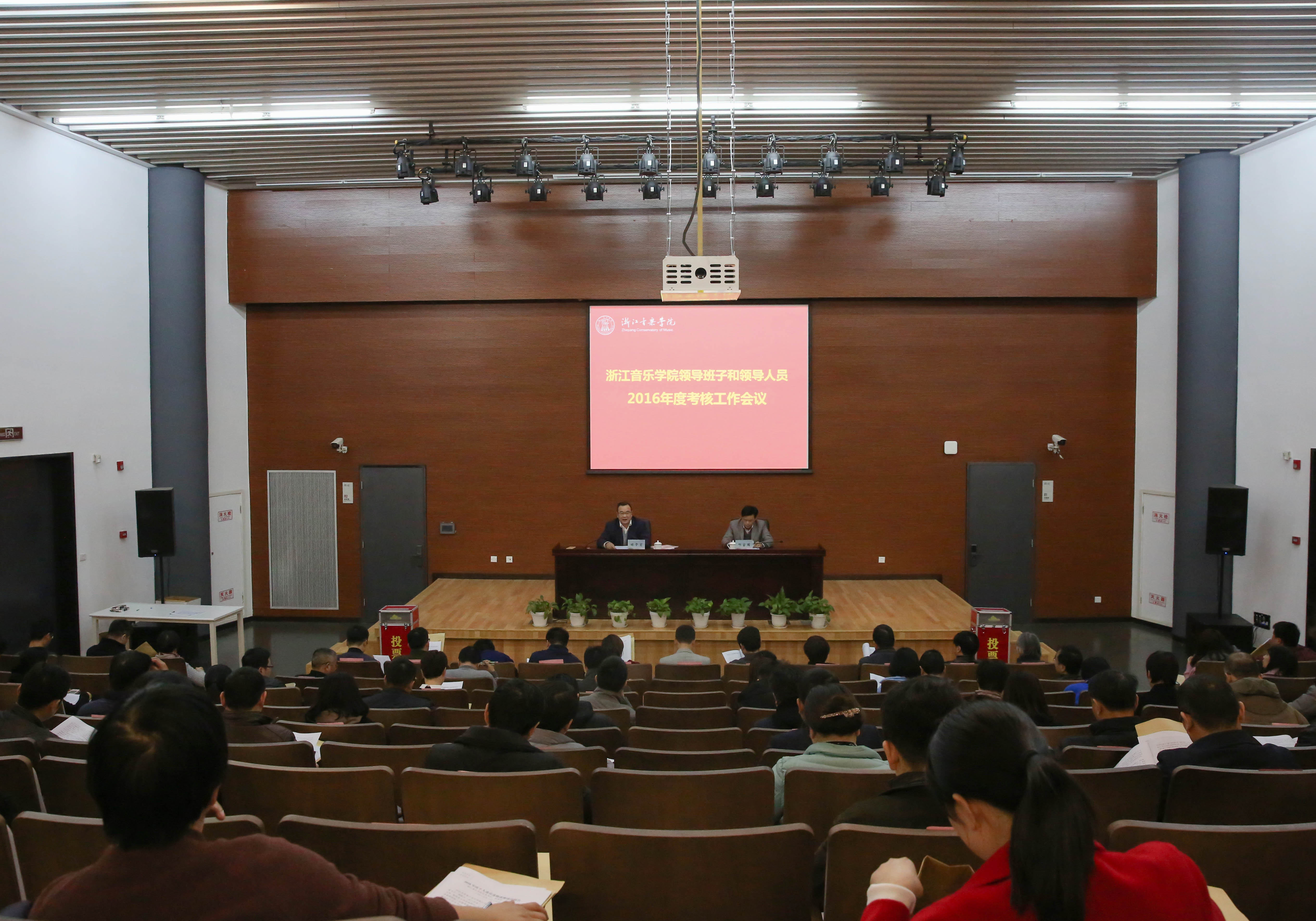 2月19日下午,2016年度学院领导班子和领导干部考核大会在学术报告厅召开。省委组织部干部三处、省委宣传部干部处、省委教育工委干部处和省文化厅人事处等有关考核组成员出席会议,学院领导班子成员、全体中层干部、高级职称教师代表、民主党派代表、教代会代表和党支部书记代表等参加会议。会议由学院党委书记褚子育主持。