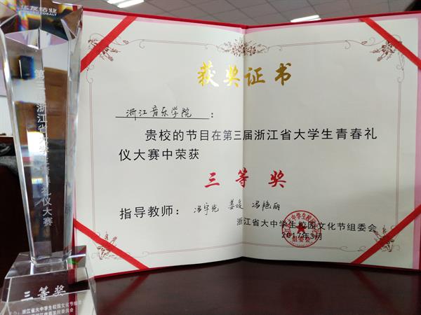 3月26日,浙江省第三届大学生青春礼仪大赛决赛在浙江传媒学院举行,代表我院参赛的“礼乐”礼仪队,通过复赛的激烈角逐,从省内近百所高校中脱颖而出,成功杀入决赛。经过三轮激烈比拼,最终我院“礼乐”礼仪队荣获本届大学生青春礼仪大赛三等奖。