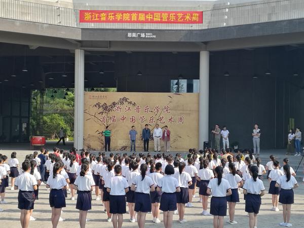 开幕式上,学院党委书记褚子育、中国音乐家协会竹笛学会长林文增、中央音乐学院民乐系副主任戴亚、国乐系相关领导等应邀出席。由百余名采荷一小的笛子百人乐团带来的精彩演出拉开了艺术周的序幕。当晚的开幕音乐会由中央音乐学院“龙之吟”笛埙乐团精彩演译了“管韵”专场音乐会。
