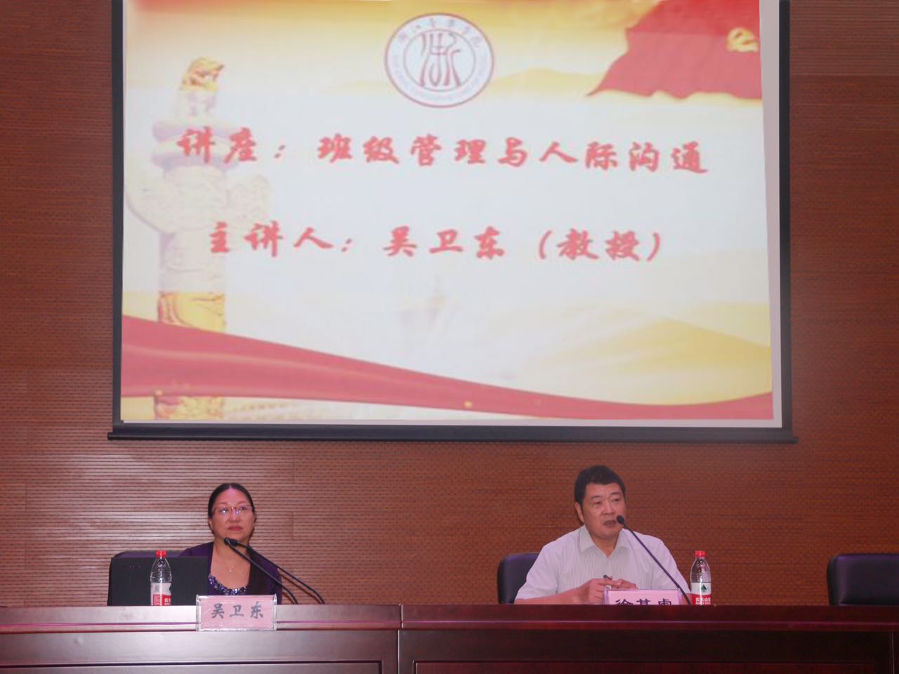 培训会上,学院特邀浙江外国语学院教师培训学院院长吴卫东教授为大家作了《班级管理与人际沟通》专题讲座。吴卫东教授结合自身多年实际工作经验和丰富案例,着重就“从松散群体到班级集体”、“班集体的社会心理指标”、“人际沟通的技巧”及“如何赢得信任”等四个方面问题进行了具体阐述,为大家切实做好班级管理和人际沟通工作提供了行动指南,具有很强针对性和实效性。