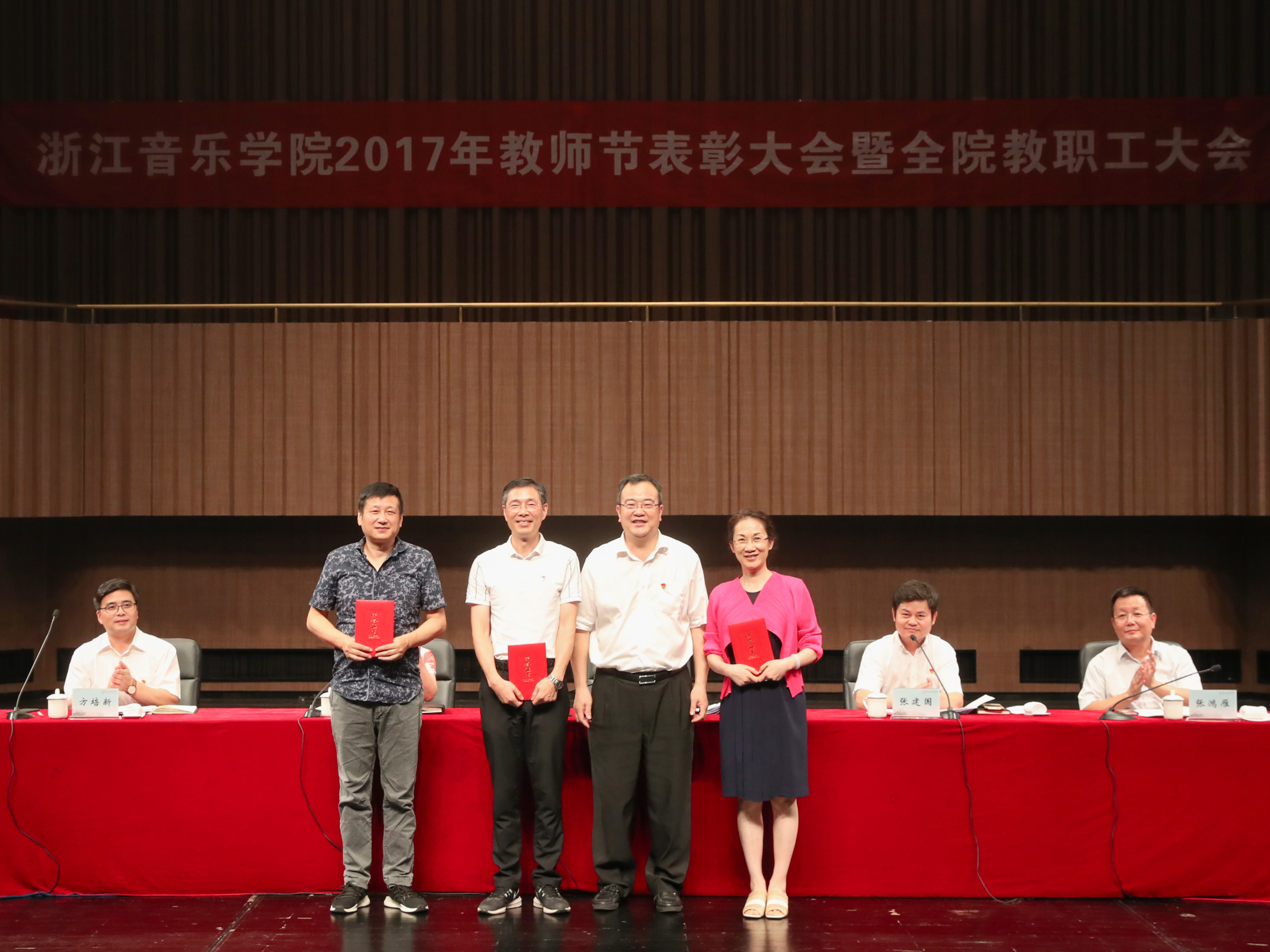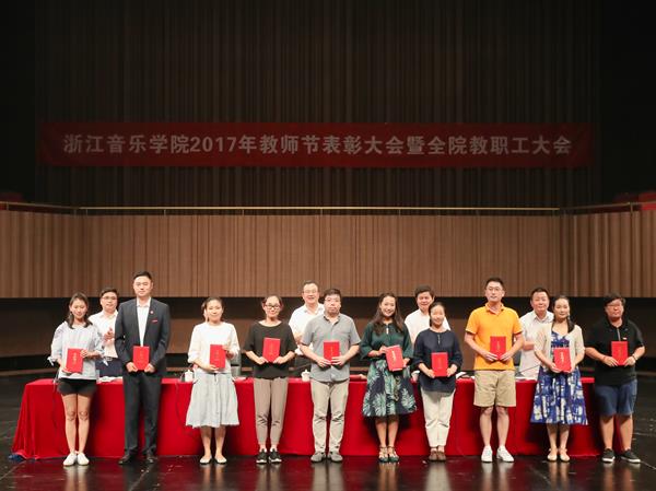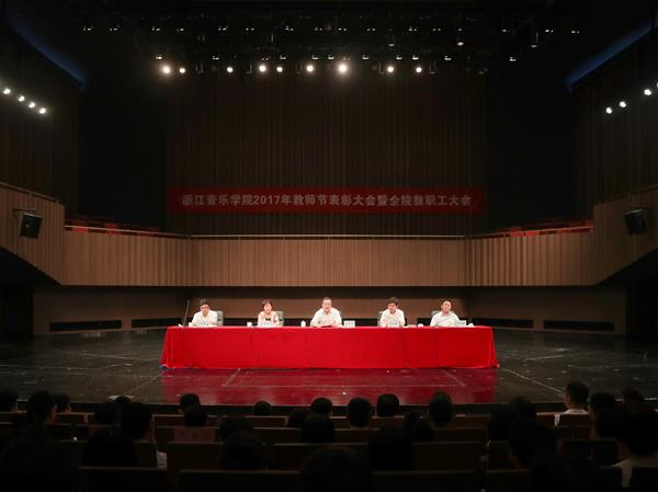 9月6日下午,浙江音乐学院2017年教师节表彰大会暨全院教职工大会在学院音乐厅隆重举行。学院党政领导褚子育、张建国、贾秀英、张鸿雁、方培新及各系(部)、单位、部门在岗教职工,附属学校各部门负责人,乐典公司各中心负责人参加会议。会议由学院党委副书记、副院长张建国主持。