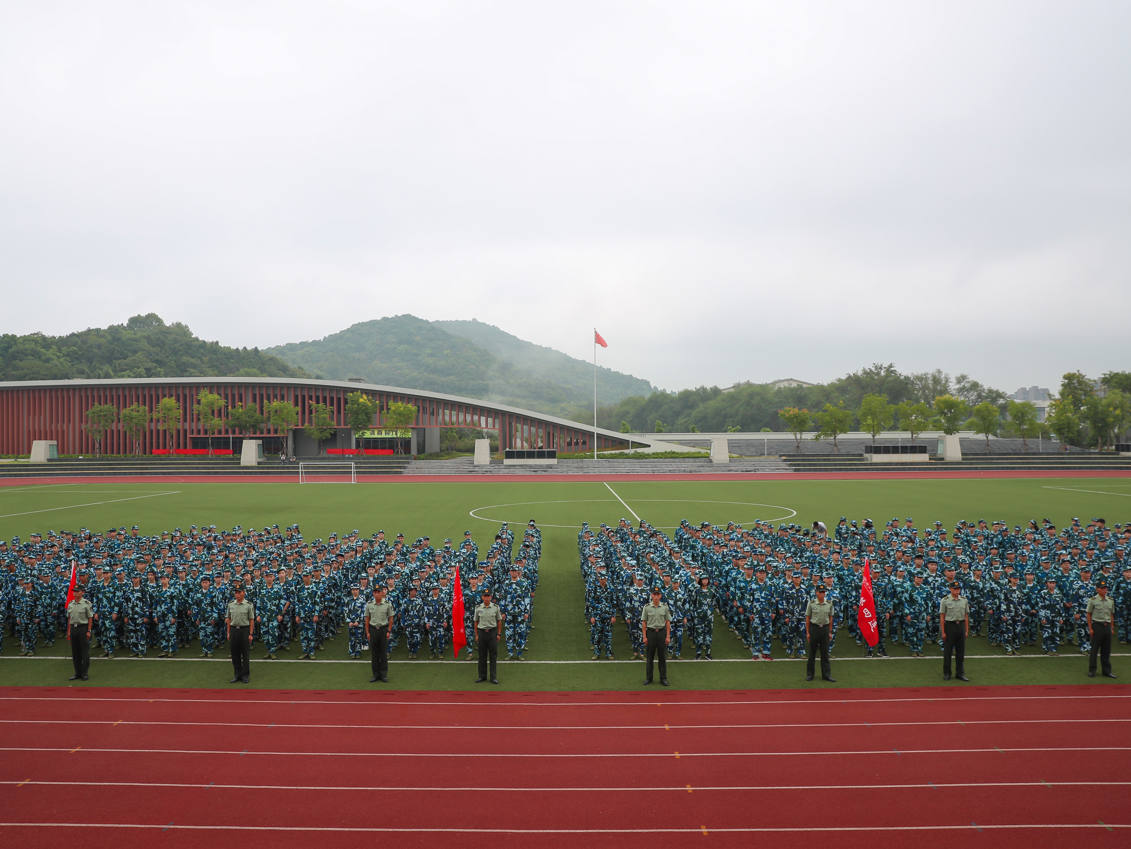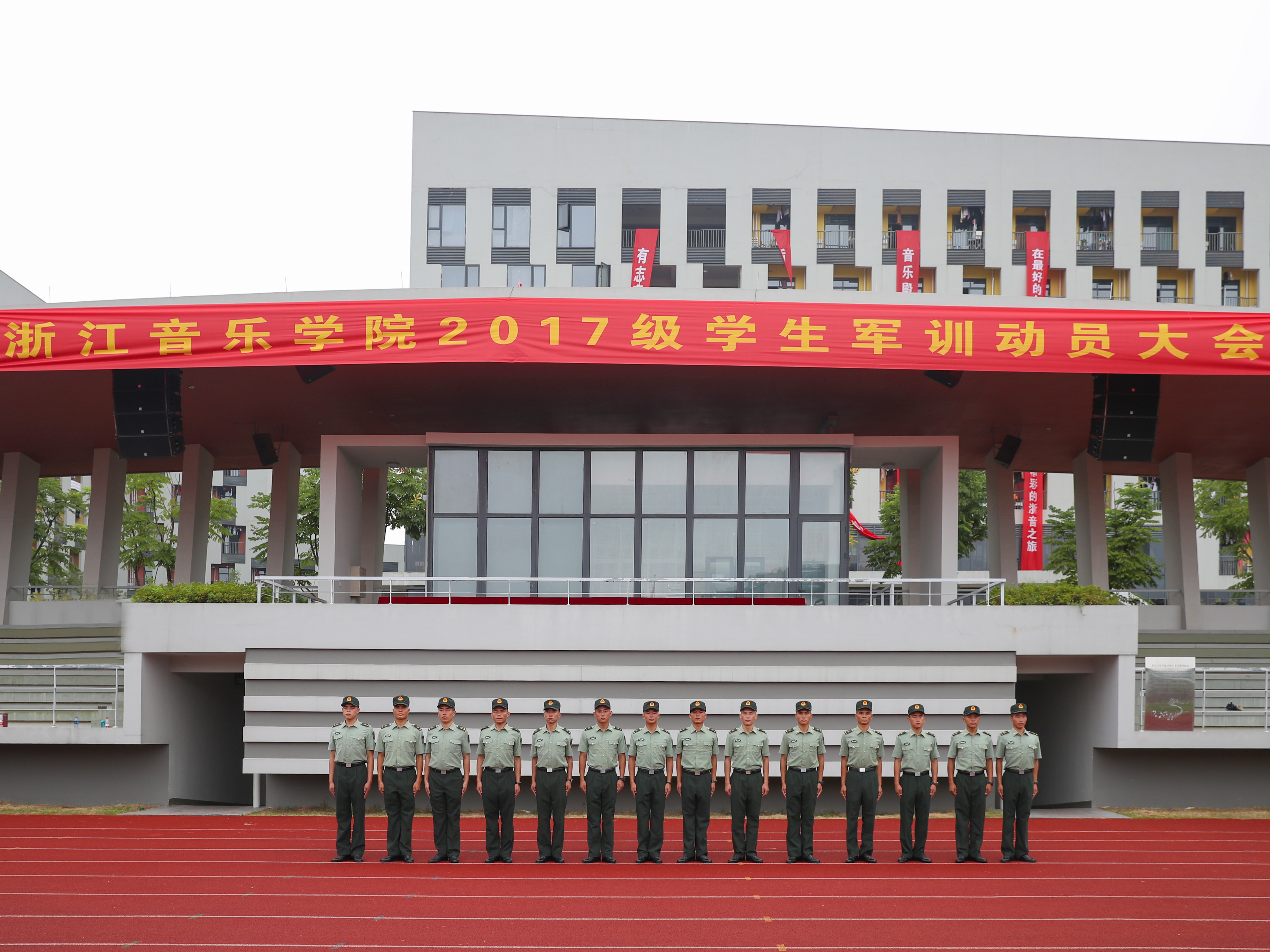 9月11日上午,我院2017级新生军训动员大会在田径场隆重举行。学院党委副书记、副院长张建国,党委副书记贾秀英,副院长张鸿雁,中国人民解放军驻杭某部队少校、军训团团长董献攀,军训团副团长牛传雷,有关部门负责人、各系副书记及承训部队教官出席动员大会。