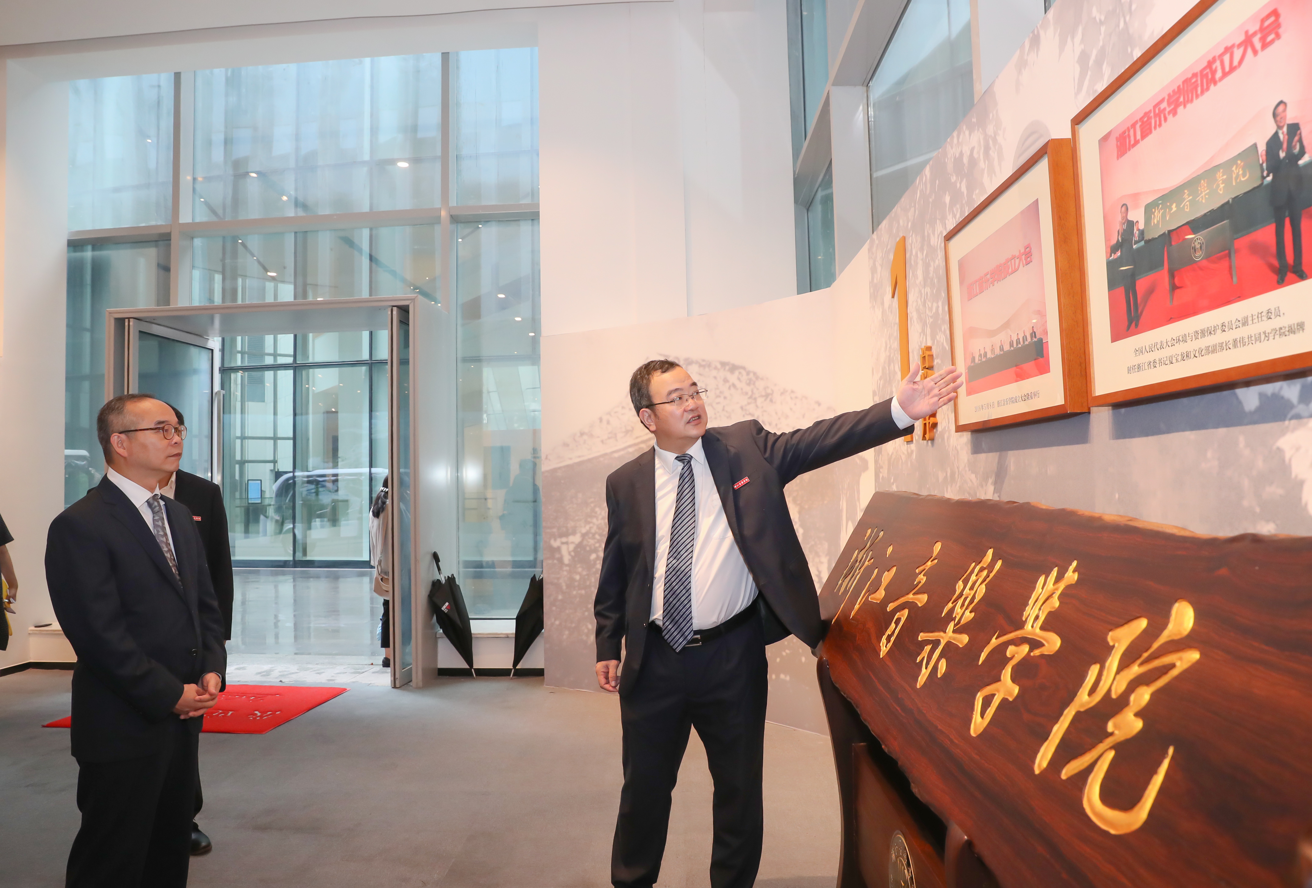 9月21日下午,香港特别行政区民政事务局局长刘江华、香港演艺学院校董会主席周振基、艺术发展咨询委员会主席周永成以及香港驻上海经济贸易办事处、香港特别行政区政府驻浙江联络处等一行来我院考察调研。学院党委书记褚子育,党委副书记、副院长张建国,党政办公室、国际交流中心、艺术实践处等相关部门负责人陪同。
