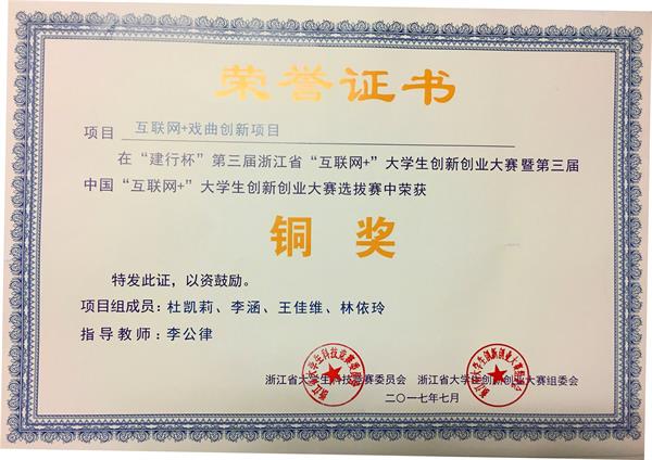 我院学子荣获第三届浙江省“互联网+”大学生创新创业大赛铜奖