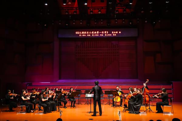 音乐会由我院作曲与指挥系副教授高健任指挥,管弦系教师李佳胤、单小明、杨光、吉祥担任独奏,音乐教育系教师卢思嘉独唱,携手演绎了莫扎特的传世名作:脍炙人心的《G大调弦乐小夜曲》、广为演奏的《降E大调交响协奏曲》,和早期最知名的声乐作品《喜悦欢腾》。当晚700座的编钟音乐厅座无虚席,热情洋溢的听众被乐团默契的配合,花腔女高音精湛的歌唱技艺所鼓舞,曲目奏毕,仍意犹未尽,报以经久不息的掌声。音乐会还通过网络直播使场外6989名听众广泛关注。