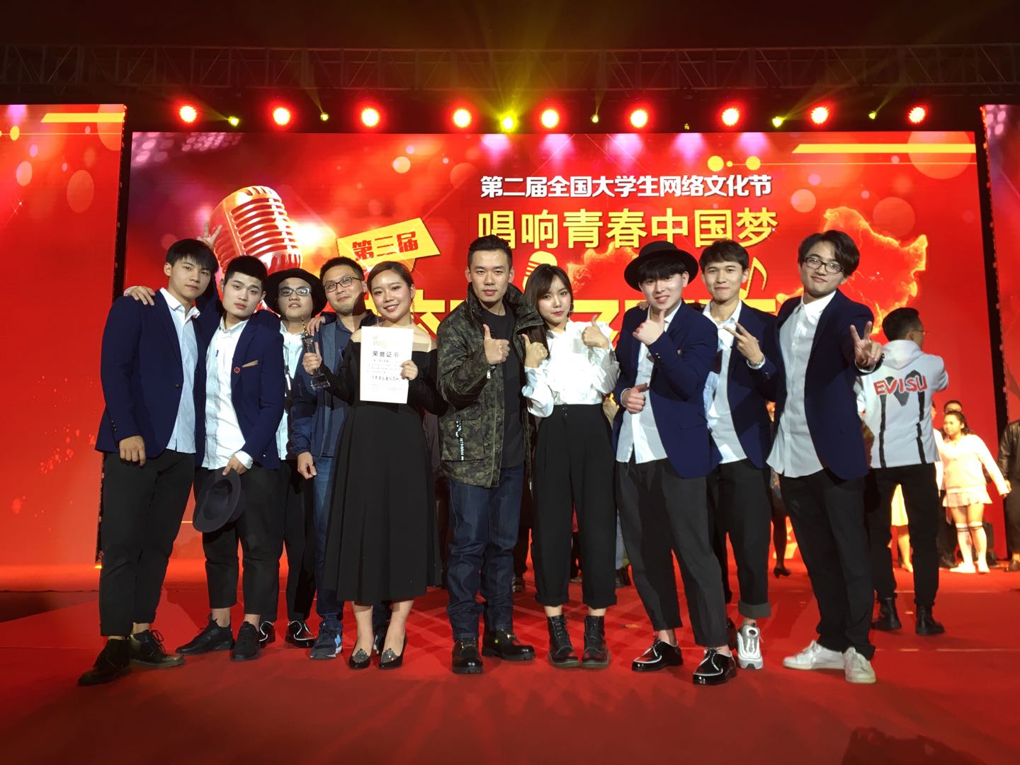 为全面贯彻落实全国高校思想政治工作会议精神,鼓励和引导广大青年学生积极参与网络文化作品创作生产,推进高校网络文化建设,繁荣校园网络文艺,打造弘扬主旋律、传播正能量的校园原创音乐平台。11月12日,由教育部思想政治工作司、中央网信办网络社会工作局主办,上海应用技术大学和教育部易班发展中心承办的“唱响青春中国梦”第三届全国高校“校园好声音”华东赛区区域赛决赛在上海应用技术大学体育馆顺利举行。由我院流行音乐系青年教师张正元指导,流行音乐系贾天元、徐磊、江州颖、章迦勒、俞申李、金俞辰、陈振杰、黄复旦等8位同学组成的“音之境”队,代表浙江省高校夺得华东赛区区域赛冠军,并顺利入围全国总决赛。