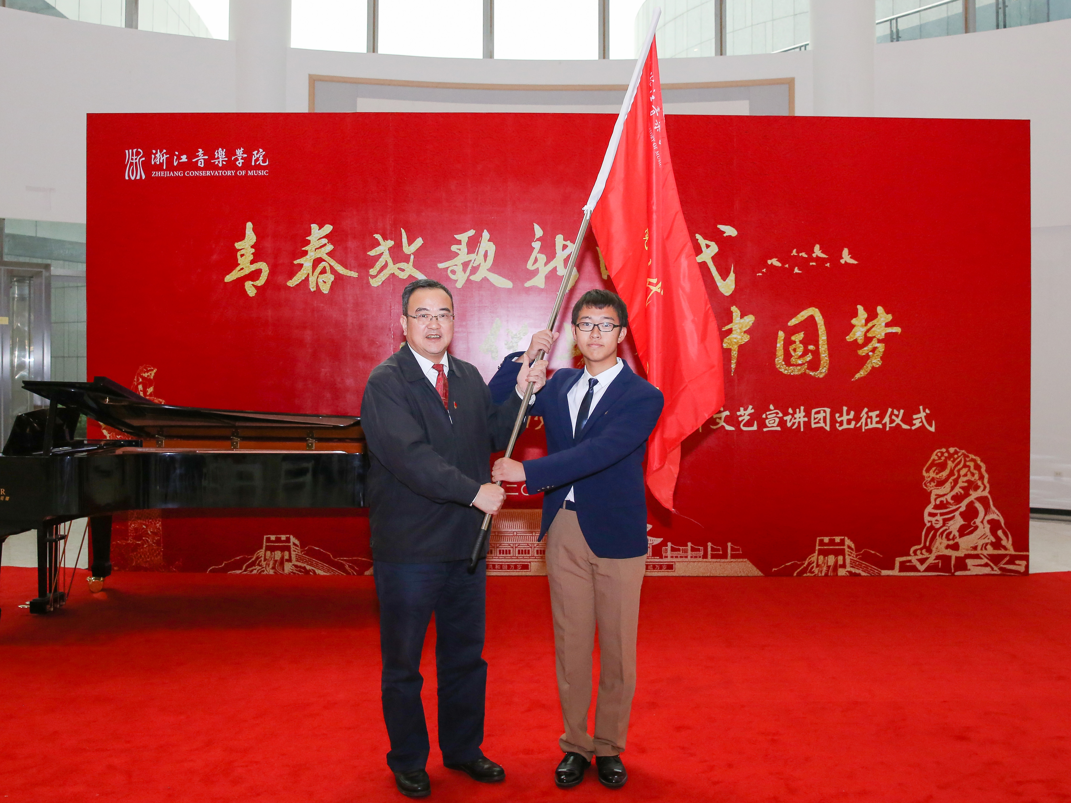 11月15日下午,学院在图书馆一楼大厅举行宣传贯彻党的十九大精神文艺宣讲团出征仪式。党的十九大代表、学院党委书记褚子育,党委副书记贾秀英,相关职能部门和系(部)党组织负责人参加出征仪式,并观看了文艺宣讲团的首场汇报演出。