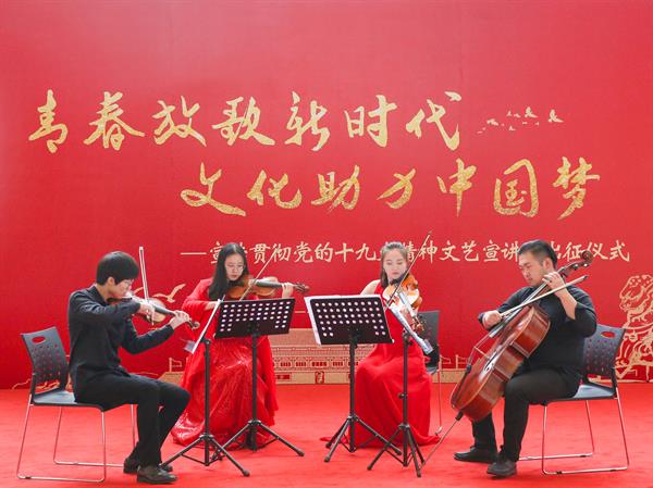 来自各系(部)的200余名师生组成的党的十九大精神文艺宣讲团正式出征,将奔赴省内各地文化礼堂,开展百场以宣传党的十九大精神为主题的文艺宣讲和演出活动,用实际行动深入宣传贯彻党的十九大精神,弘扬新时代主旋律。