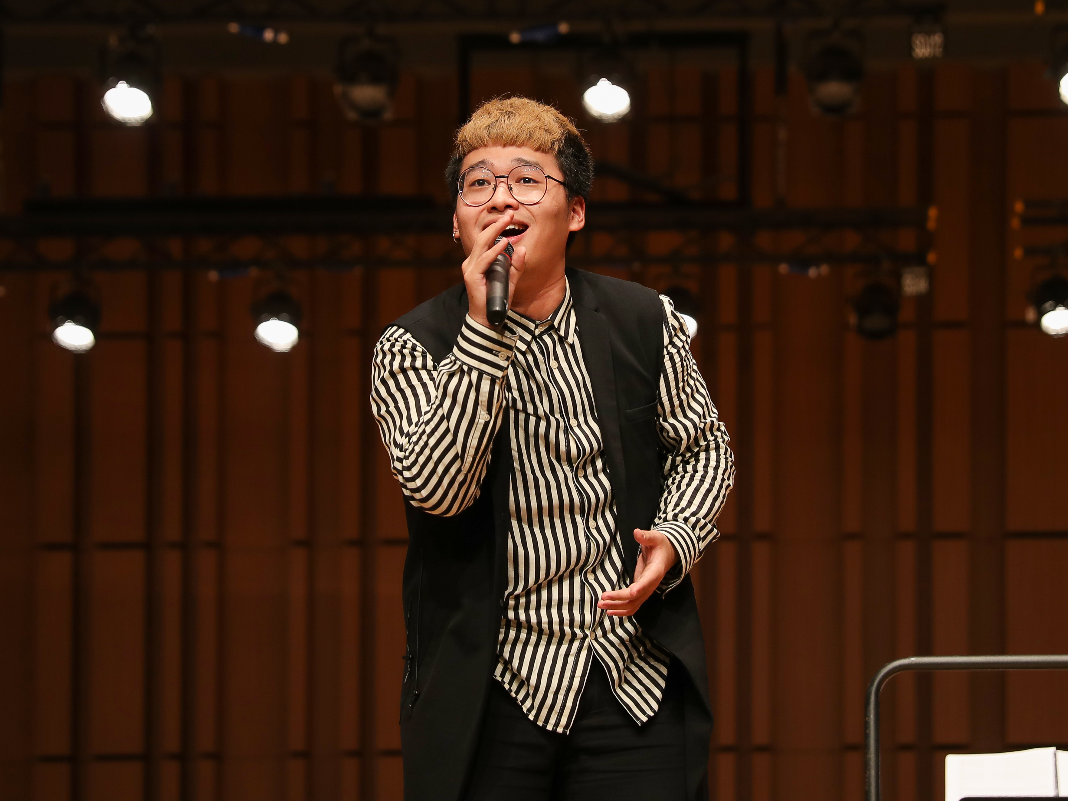 实习管弦乐团演奏的小提琴协奏曲《梁祝》,采用交响乐与民间戏曲音乐的表现手法,深入而细腻地描绘了梁祝相爱、抗婚、化蝶的情感与意境,演出由刘梓毅小提琴领衔独奏,利用小提琴、长笛、单簧管等乐器演奏出一曲现代民族化协奏曲。《太阳出来喜洋洋》由作曲与指挥系学生王翻进行改编,实习乐团管弦乐队进行演奏,旋律悦耳动听,表现出音乐较高的抒情性和艺术性。声乐歌剧系沈鑫辉同学用欢快响亮的声音演绎了流行歌曲《金银岛》,歌曲以声传情、以情绘声,激情澎湃的歌声感染了听众。《保卫黄河》由钢琴系吕周容、张婧婧同学合奏,他们用华丽的技巧和饱满的激情激励着人民在未来的人生道路上拼搏奋进。男女生二重唱《老师我想你》由声乐歌剧系的张杰和黄杨鑫进行演唱,热情动听的演唱,诉说了对老师的崇敬与感激之情。《千与千寻》音乐与朗诵是整台演出中最具诗意的节目,伴随着深情、悠扬的旋律,何昱良同学表达出所有毕业生对母校的热爱、对老师的不舍以及对未来新征程的信心。在14级实习乐团昊辰老师的指挥下,合唱队用温柔的歌声诠释了《我期待》这首歌曲。《布兰诗歌》由作曲与指挥系瞿璐进行改编,实习乐团合唱队进行演唱,管弦乐队进行演奏,人声与乐队的结合,声音扎实而震撼,如同蓄谋已久的内在力量突然迸发,情绪高涨,震撼人心。“五星红旗迎风飘扬 ,胜利歌声多么响亮……”演出的压轴作品是被誉为“第二国歌”的《歌唱祖国》,在令人心潮澎湃的集体大合唱中2014级毕业生实习乐团用雄伟嘹亮的歌声和饱满的热情向大家展示了浙音学子的专业技能和当代大学生积极向上的精神风貌。