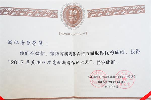 学院荣获“2017年度浙江省高校新媒体优胜奖”