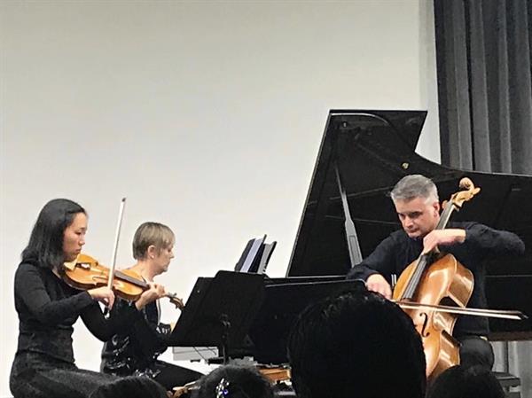 5月11日晚,我院作曲与指挥系“吴越新韵”当代音乐创作与推广项目新作品音乐会走进上海音乐学院,标志着由作曲与指挥系李珺等9位教师新创作的三重奏作品全国音乐院校巡演之旅正式开启。此次巡演由新西兰钢琴三重奏乐团(NZTrio)倾情演绎。