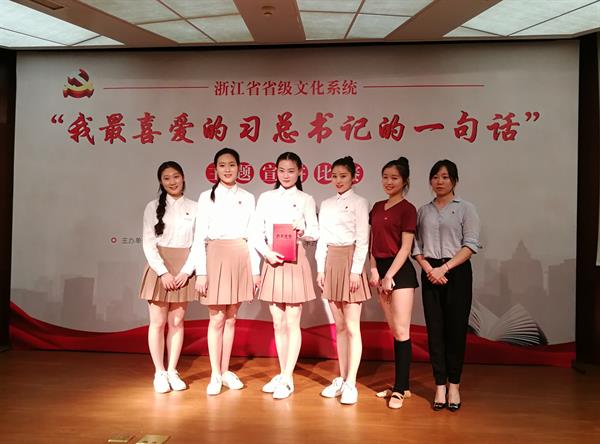 5月16日,省级文化系统“我最喜爱的习总书记的一句话”党课主题宣讲比赛决赛隆重举行。我院舞蹈系党总支选送的《青春是用来奋斗的》受到现场评委观众一致好评,最终荣获省级文化系统“我最喜爱的习总书记的一句话”党课主题宣讲比赛第一名(一等奖)。