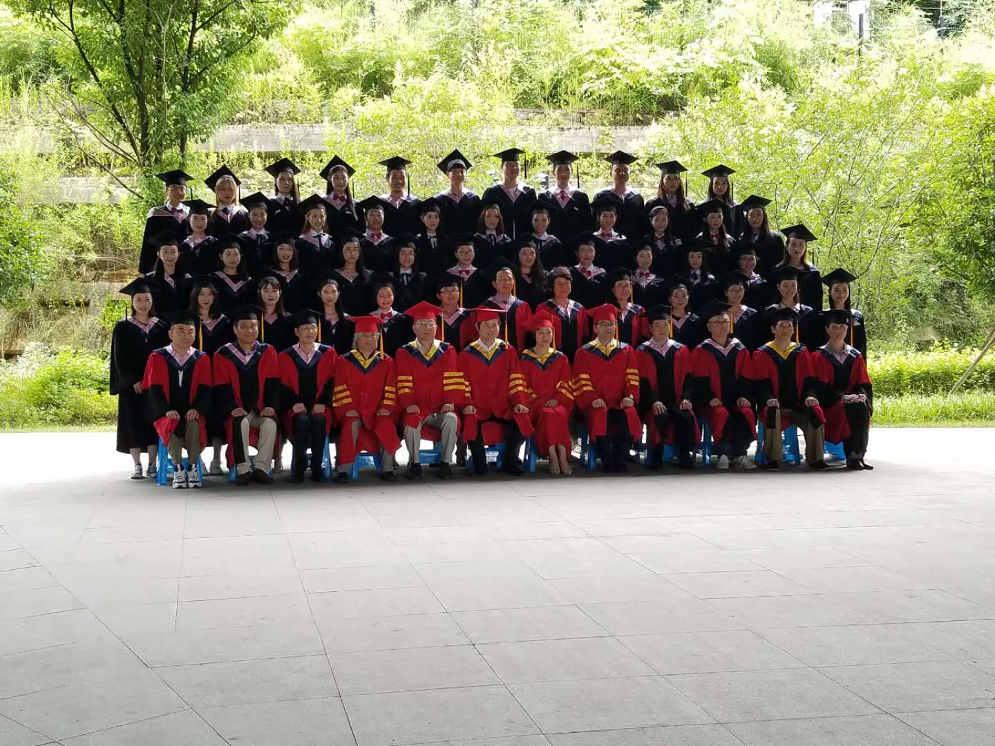 各系主任为每位毕业生拨穗并合影。仪式结束后全体与会人员合影留念。据悉,2018届共有46名专升本毕业生,4人被评为校级优秀毕业生。