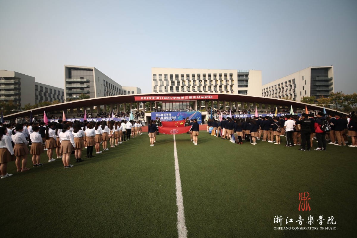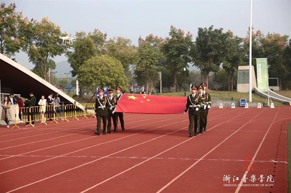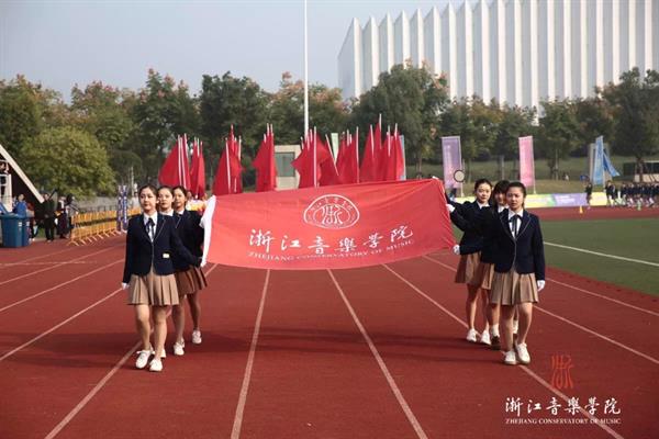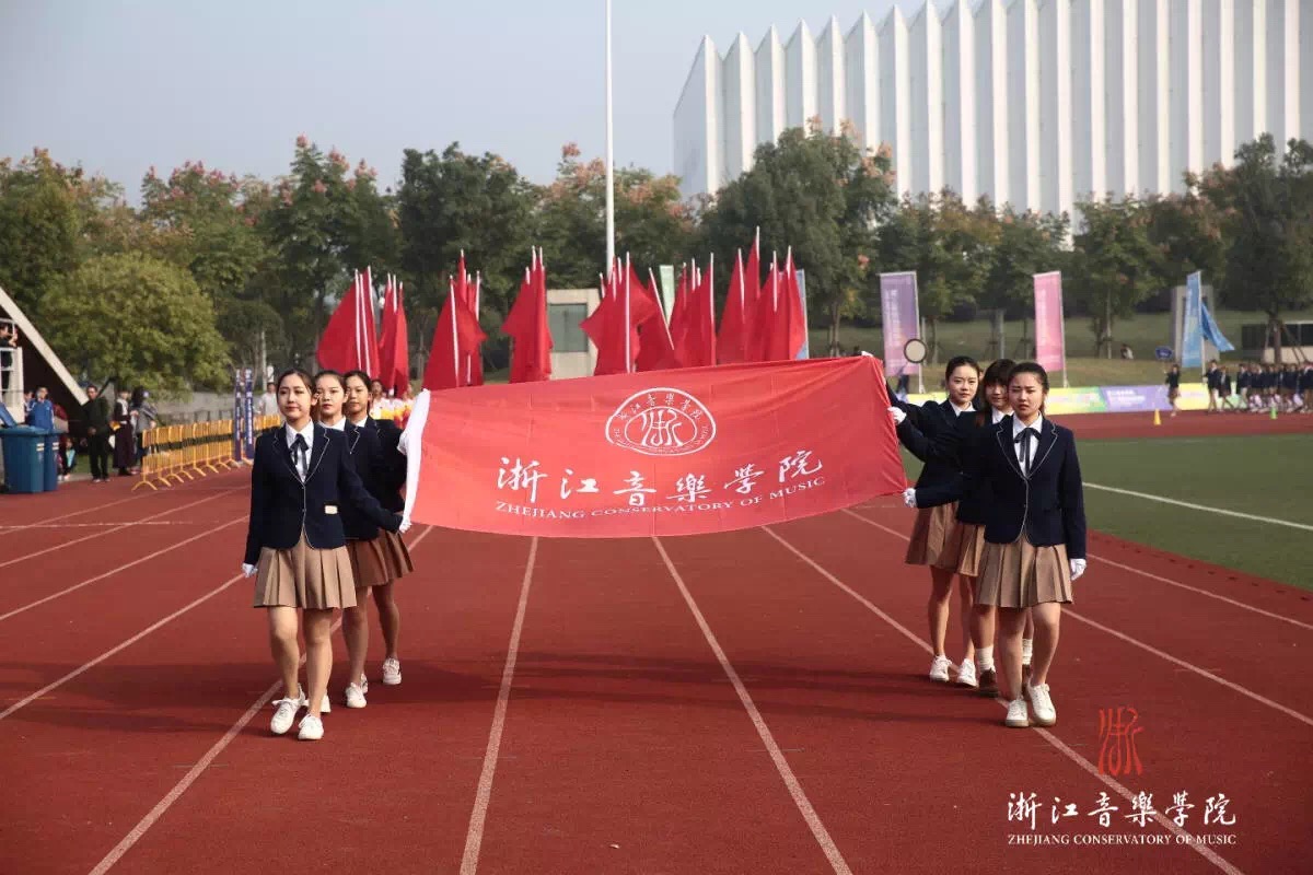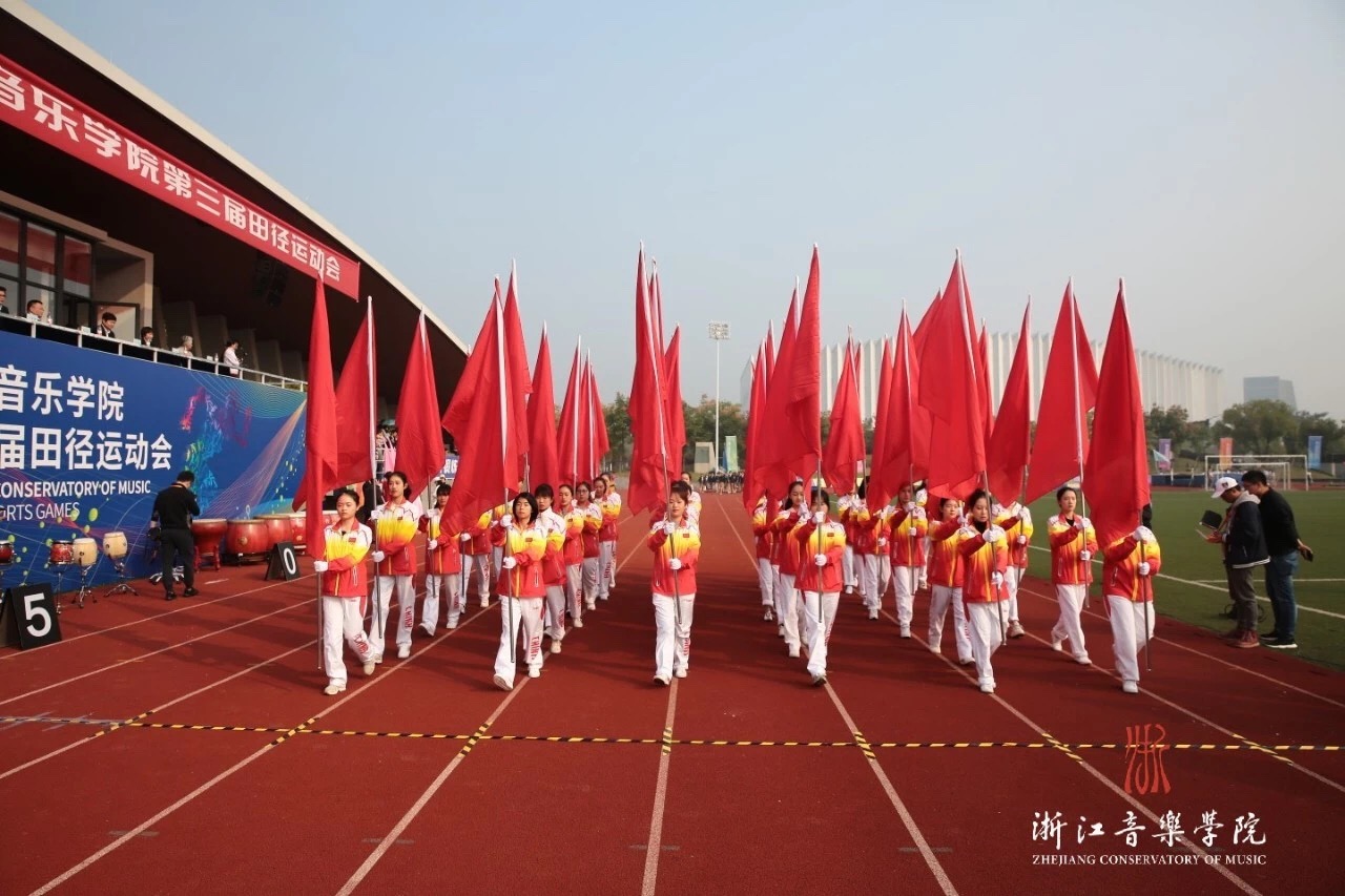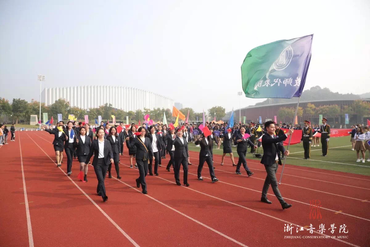 体育场上,横幅悬挂、红旗招展,彰显着运动精神与魅力。伴随着激扬雄壮的进行曲,仪仗队护卫着鲜红的五星红旗正步走过主席台前方,紧随其后的是校旗、红旗方队,旗手们英姿飒爽地步入会场。11个系(部)、研究生处、附属音乐学校组成的学生方队依次入场,精彩的入场表演,是体育场上一道靓丽的风景线。紧随其后的是由16个分工会教师代表组成的教师方队和乐典公司职工的方队进场,大家精神焕发、风采奕奕,展现了浙音教职工的气场与风范。