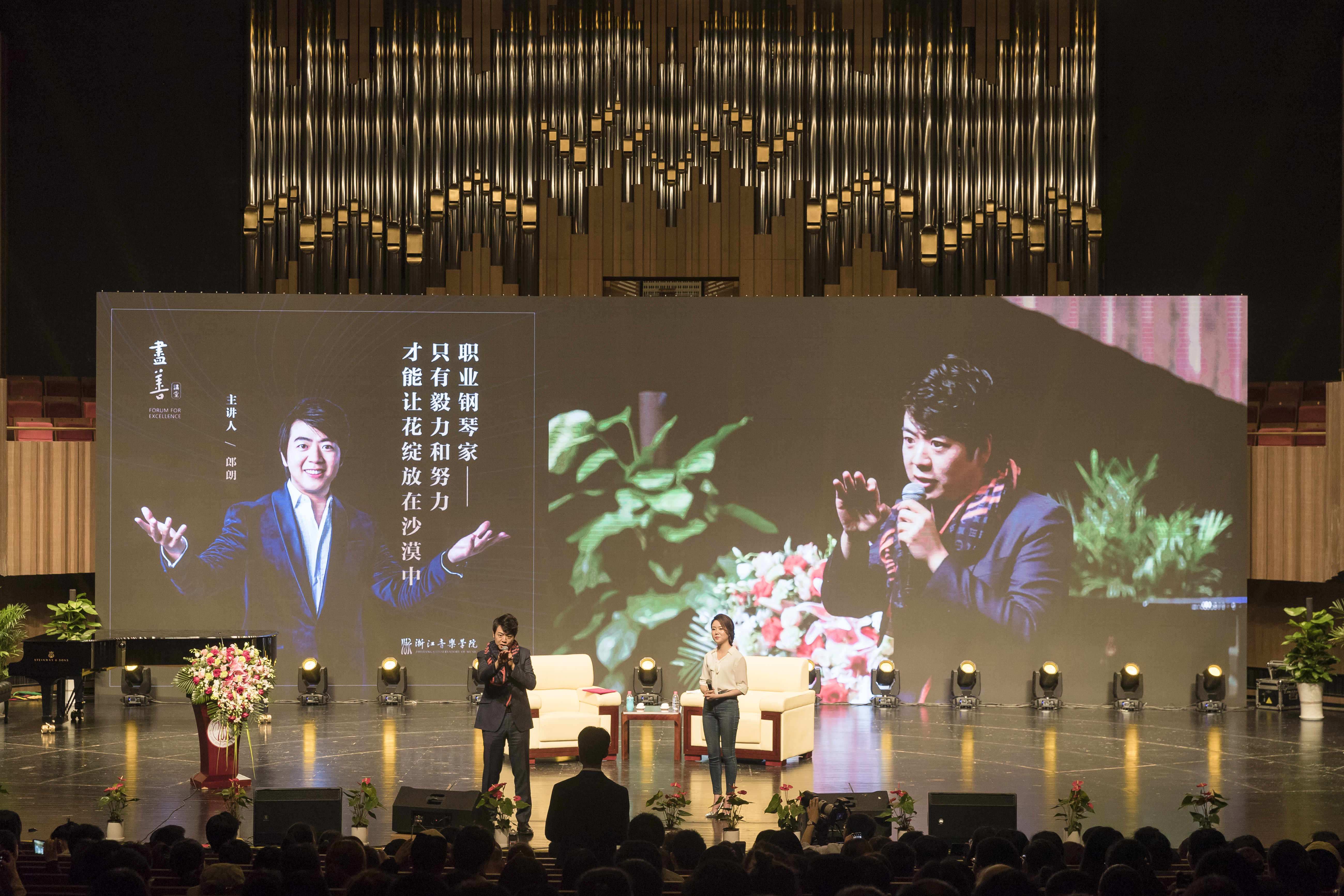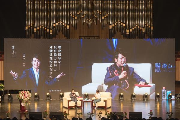 5月6日晚,我院“尽善讲堂”第三讲在音乐厅如期而至。著名钢琴演奏家郎朗以“职业钢琴家——只有毅力和努力才能让花绽放在沙漠中”为题,通过现场访谈互动的形式,与浙音学子畅谈音乐之路。