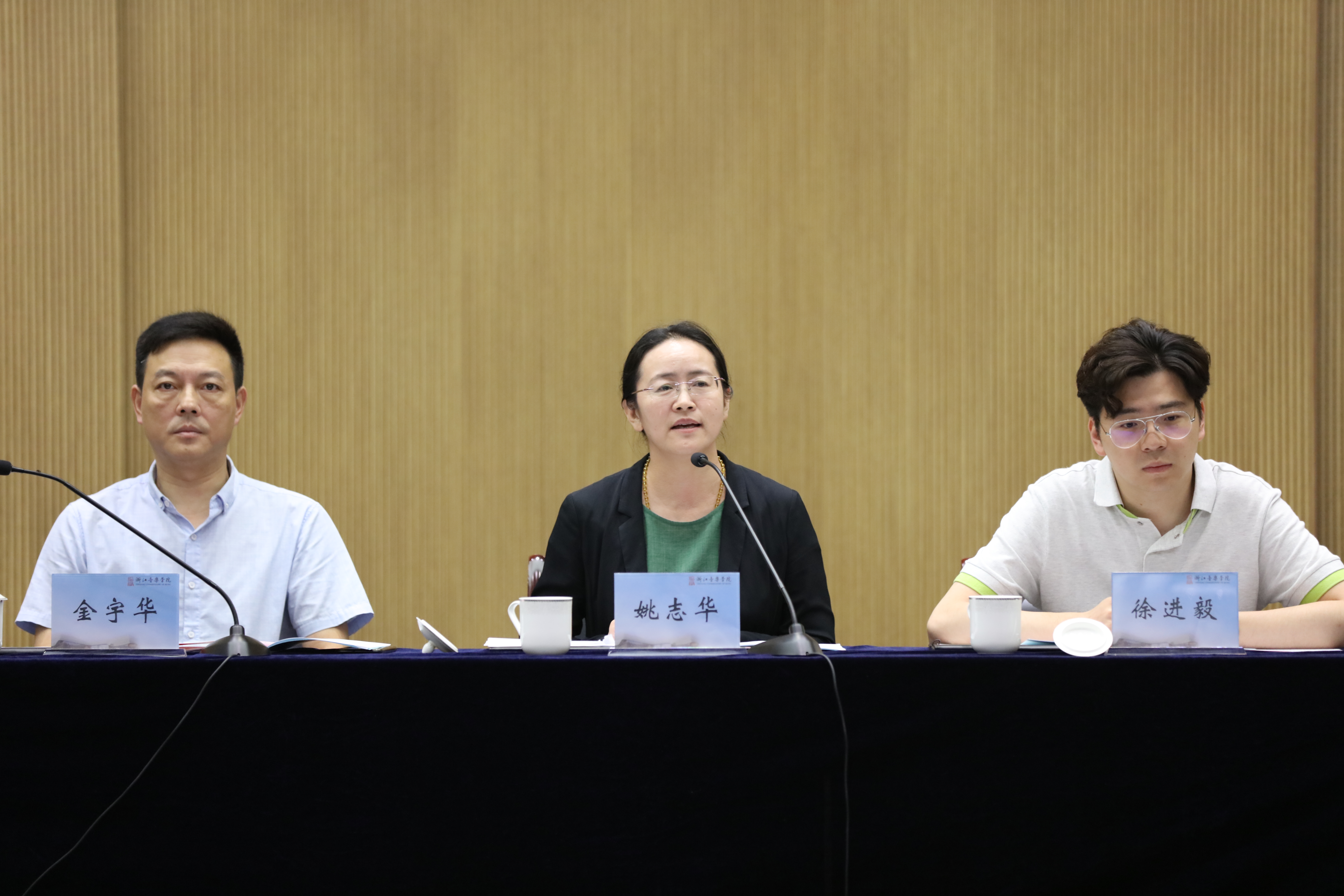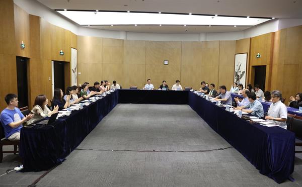 7月19日,国家艺术基金2019年滚动资助项目民族管弦乐《钱塘江音画》“一改”研讨会在行政楼103会议室召开,国家艺术基金管理中心活动处负责人姚志华、活动处专员徐进毅,学院党委副书记贾秀英,省文化和旅游厅艺术处副处长金宇华,中国音乐家学会党组书记、国家一级作曲韩新安,上海音乐学院教授尹明五、李景侠、唐俊乔,山东大学艺术学院党委书记、教授李晓峰,南京艺术学院音乐学院副院长、教授杨曦帆,浙江交响乐团国家一级作曲王天明,上海民族乐团国家一级演员段皑皑和媒体记者、主创团队成员参加研讨会。
