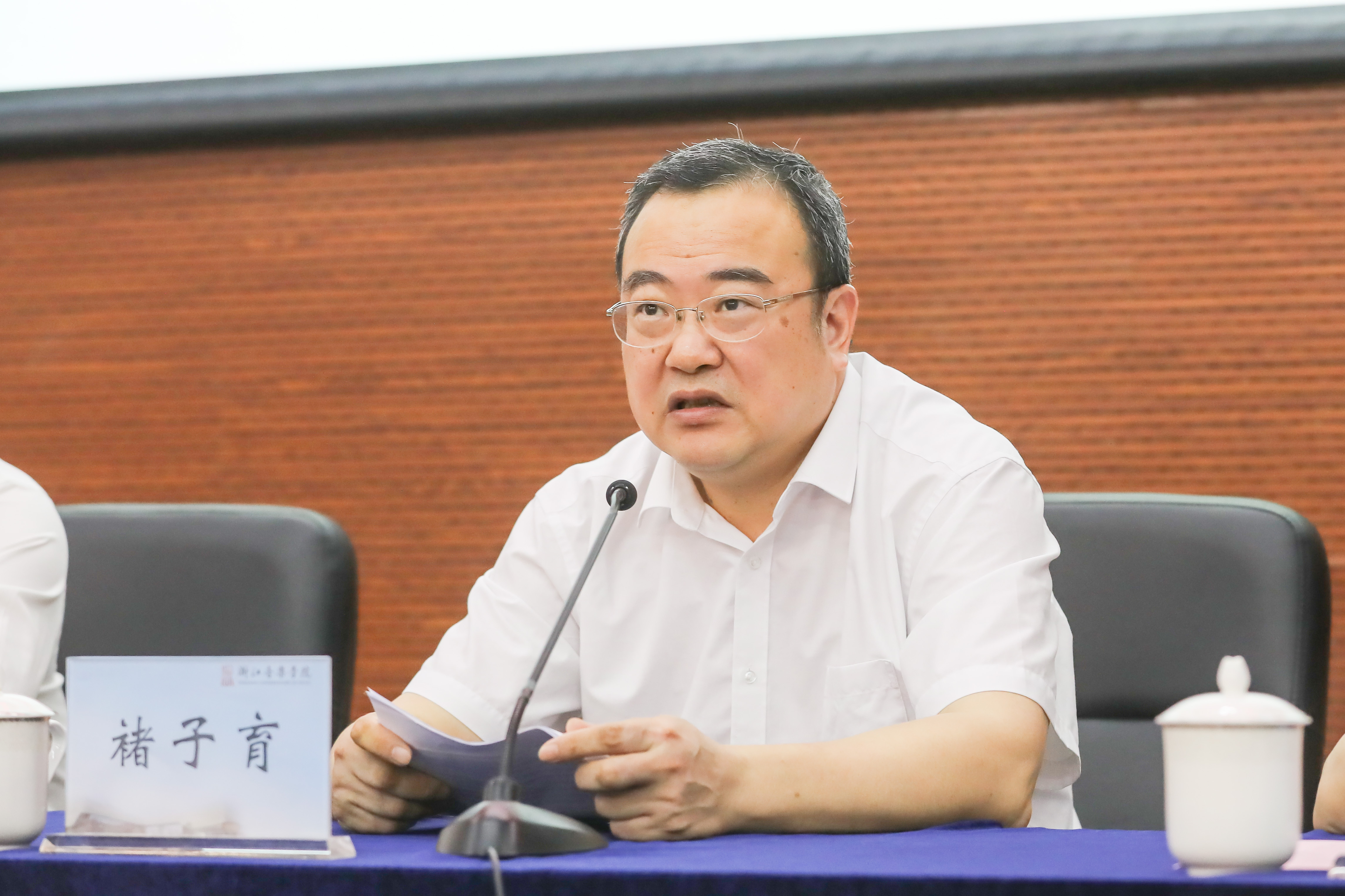 褚子育在会上讲话。他表示,坚决拥护省委决定,衷心感谢省委省政府和省委组织部、省委宣传部、省教育厅一直以来对浙江音乐学院建设与发展的关心和支持,对王瑞同志出任浙江音乐学院院长表示最热烈的欢迎。他代表省文化和旅游厅对学院班子和全体教职工提出了四点要求:一要坚持正确办学方向,二要深化内涵建设,三要加大体制机制创新,四要强化自身班子建设。他表示省文化和旅游厅会继续关心和支持浙江音乐学院的改革与发展,希望浙江音乐学院利用好办学体制优势,加强与省委宣传部、教育厅的联系,抓住良好机遇,借力发展,以时不我待的精神推动浙江音乐学院冲进国内音乐院校第一方阵。