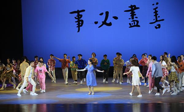 长亭外,古道边,芳草碧连天。一曲李叔同创作的《送别》在观众耳边萦绕,婉转悠扬、情深绵延的音乐道尽了万语千言。全剧充满浓郁的青春色彩,从我院学生的视角切入,探寻中国百年艺术教育的得失和教训,通过丰富的多媒体画面呈现出排练厅、雕塑群、图书馆等熟悉的校园场景,营造了浪漫诗意、励志动人的视觉氛围。故事主线清晰、舞台设计独特,人物矛盾突出、内心戏份活跃,可谓波澜迭起,扣人心弦。演员们声入人心的演唱、载歌载舞的表演,赢得现场观众的热烈掌声。观众们在观看中深深感受到作为中国现代艺术教育的先驱者和奠基人,民国艺术大师李叔同为后人留下了的那份取之不尽、用之不汲的艺术瑰宝,体会到在李叔同先生倡导的“学堂乐歌”精神下,浙音人正将“尽善”的理念,渗透到学院教育教学、学生成长成才等方方面面,以精益求精的生活态度、真善为美的处事方式,促进学院跨越式发展。