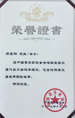 学院“八秒”合唱团艺术总监阎宝林教授当选中国音协合唱联盟副主席