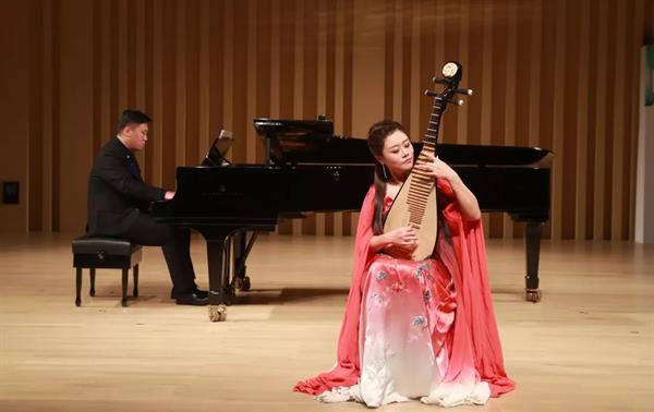 座谈会后,与会全国各大音乐学院师生在延安大剧院音乐厅隆重举行“群星璀璨——全国音乐学院优秀师生展演音乐会”。汇演充分体现了各大音乐院校近年来在师资建设和人才培养上所取得的成果。我院国乐系青年教师杨婧,与钢琴系优秀学生周正义参加展演,并以一曲琵琶协奏曲《晚秋》博得参会嘉宾与观众的一致高度赞誉。