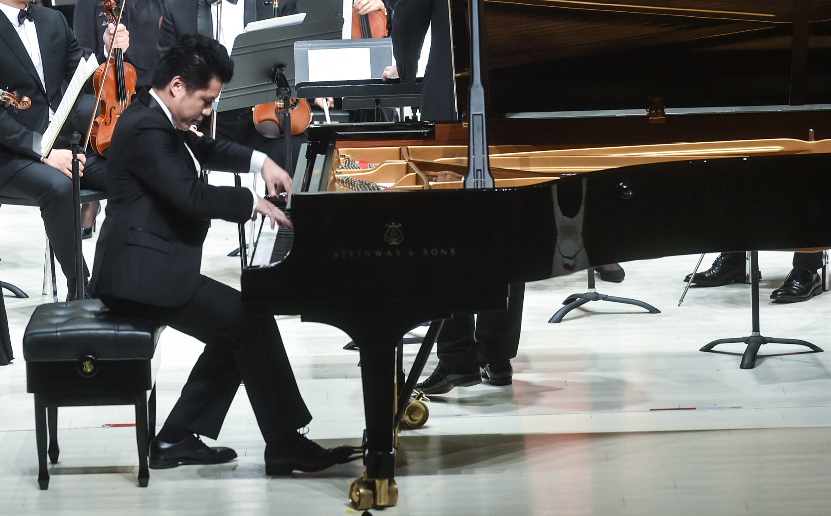 开幕式上,中国文学艺术界联合会党组成员、书记处书记李前光和成都市市长罗强先后致辞。著名指挥家余隆、杨洋、洪音等,著名歌唱家廖昌永、阎维文、殷秀梅、吕继宏、张也、雷佳,著名演奏家宋飞、吕思清等国内顶尖艺术家依次登台亮相,助力“金钟”盛会。我院钢琴系青年教师、第七届中国音乐金钟奖钢琴比赛金奖获得者朱昊参加了金钟之星管弦乐专场音乐会,并与杭州爱乐乐团携手合作演奏了柴可夫斯基的《第一钢琴协奏曲》,精湛的技艺赢得观众热烈掌声,获得一致好评。