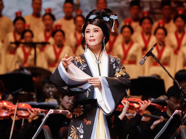 该作品由我省著名作曲家谈声贤、孙建国创作,并以中国传统戏曲不同剧种的声腔音乐作为素材,运用西方交响音乐作曲、配器法创作而成,选择昆曲、越剧、绍剧、婺剧四大剧种为音乐主题元素,使该作品具有了强烈的中国音乐风格与鲜明的浙江地域特色。中国戏曲在世界戏剧之林中具有独特的美学魅力,戏曲音乐的交响化,不仅能展现中华民族的传统音乐文化风釆,同时也期望对交响音乐本身在中国的多样性发展做出积极的探索和贡献。该演出阵容强大,戏剧梅花奖获得者王滨梅饰演卓文君,戏剧梅花奖获得者施洁净饰演李清照,国家一级演员郑培钦饰演蔡文姬,著名歌唱家吴晓芳饰演上官婉儿。交响乐、合唱部分分别由我院交响乐团、合唱团约200人的庞大阵容联合演出。